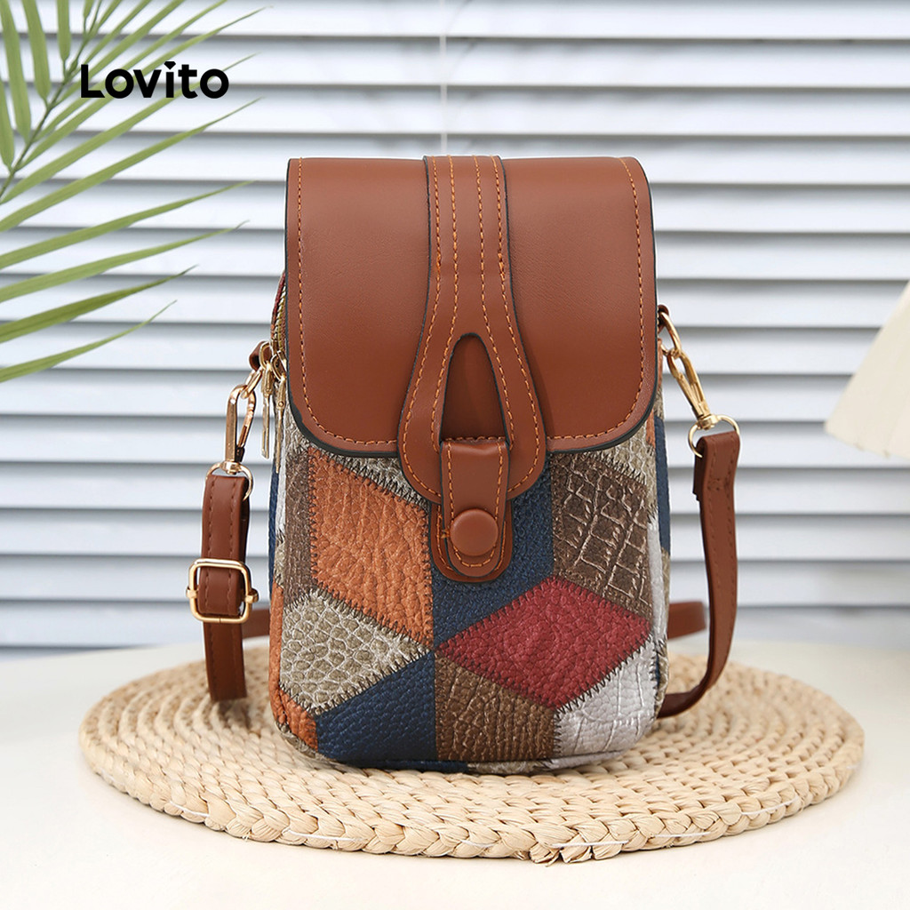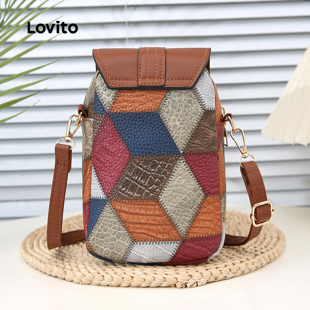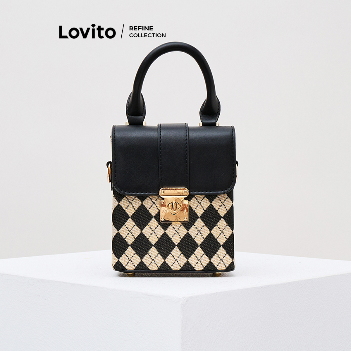Lovito Tecido de Padrão Diamante Casual Personalizado Bolsa Pequena de Ombro para mulheres LFA90371