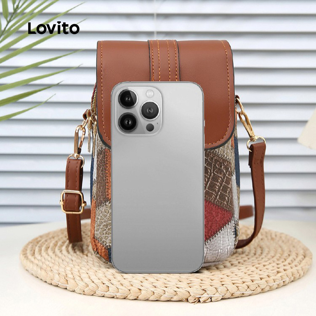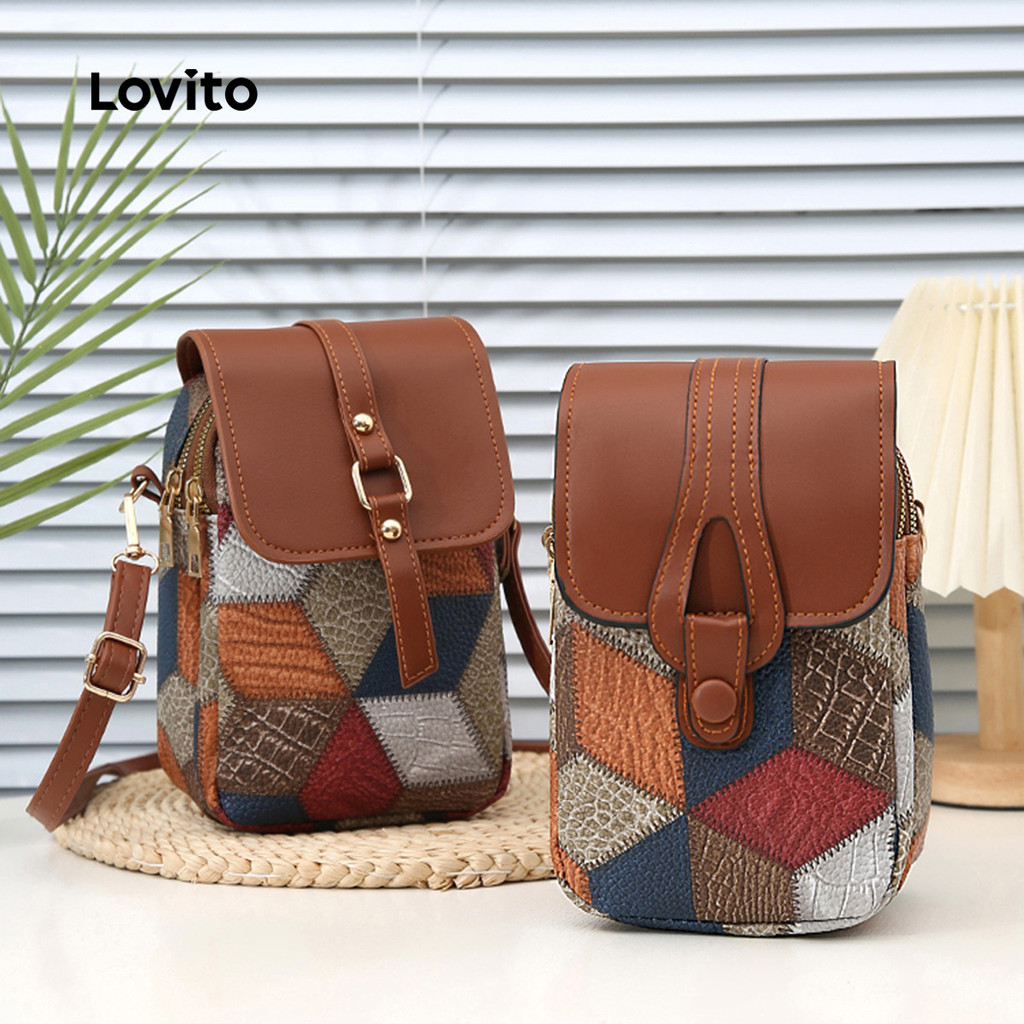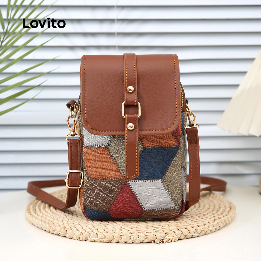 Lovito Tecido de Padrão Diamante Casual Personalizado Bolsa Pequena de Ombro para mulheres LFA90371