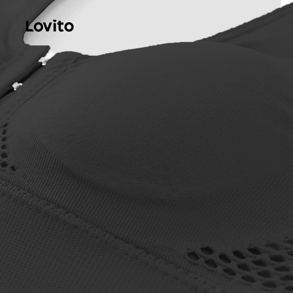 (NEW) Lovito Sutiã Esportivo Push-up Reduz O Impacto com Alças Ajustáveis Sutiã Esportivo Preto para mulheres LNE116X005