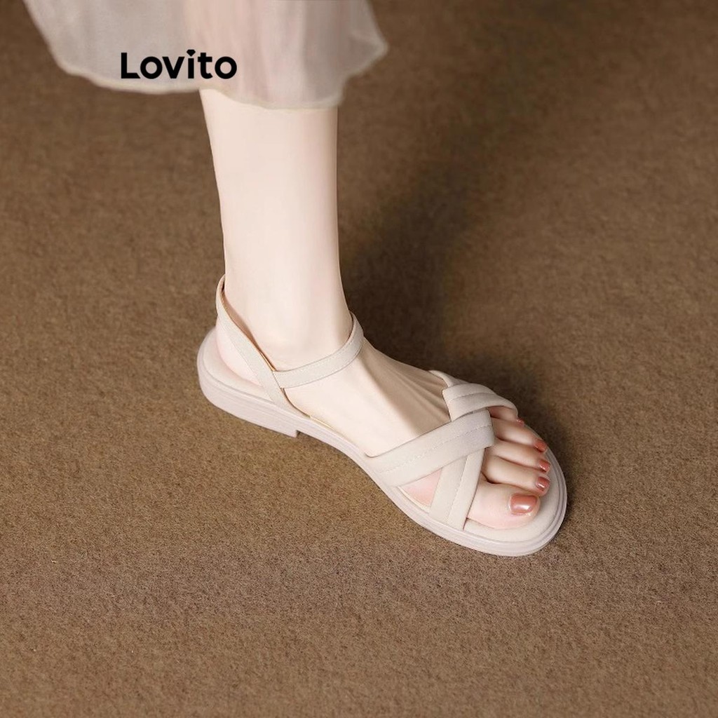 Lovito Sandália rasteira confortável antiderrapante casual para mulheres LFA34557
