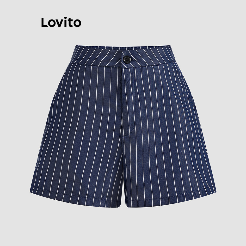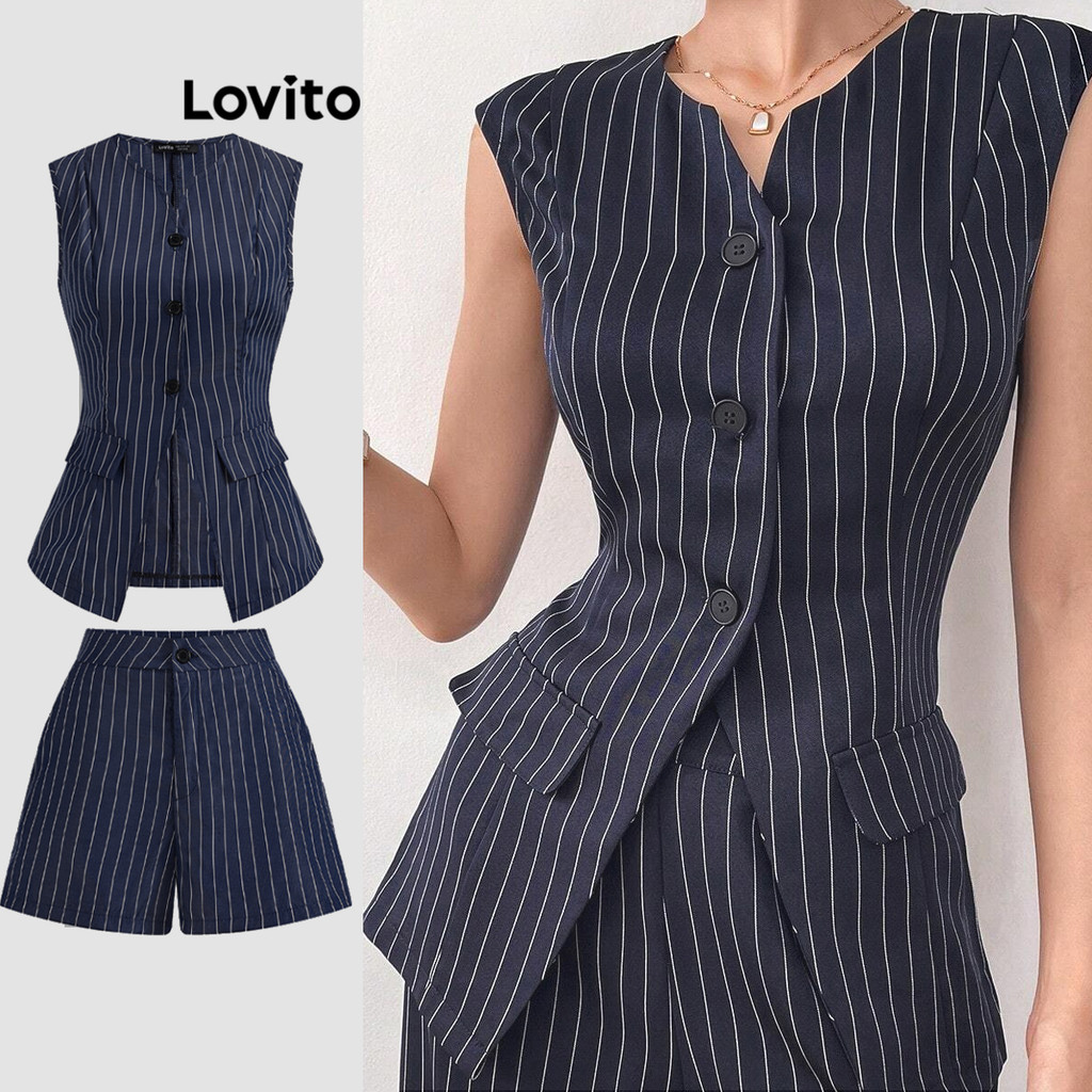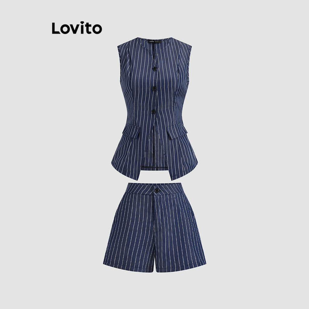 Lovito Tops ou calças femininas elegantes listradas com botão frontal dividido LBL19740