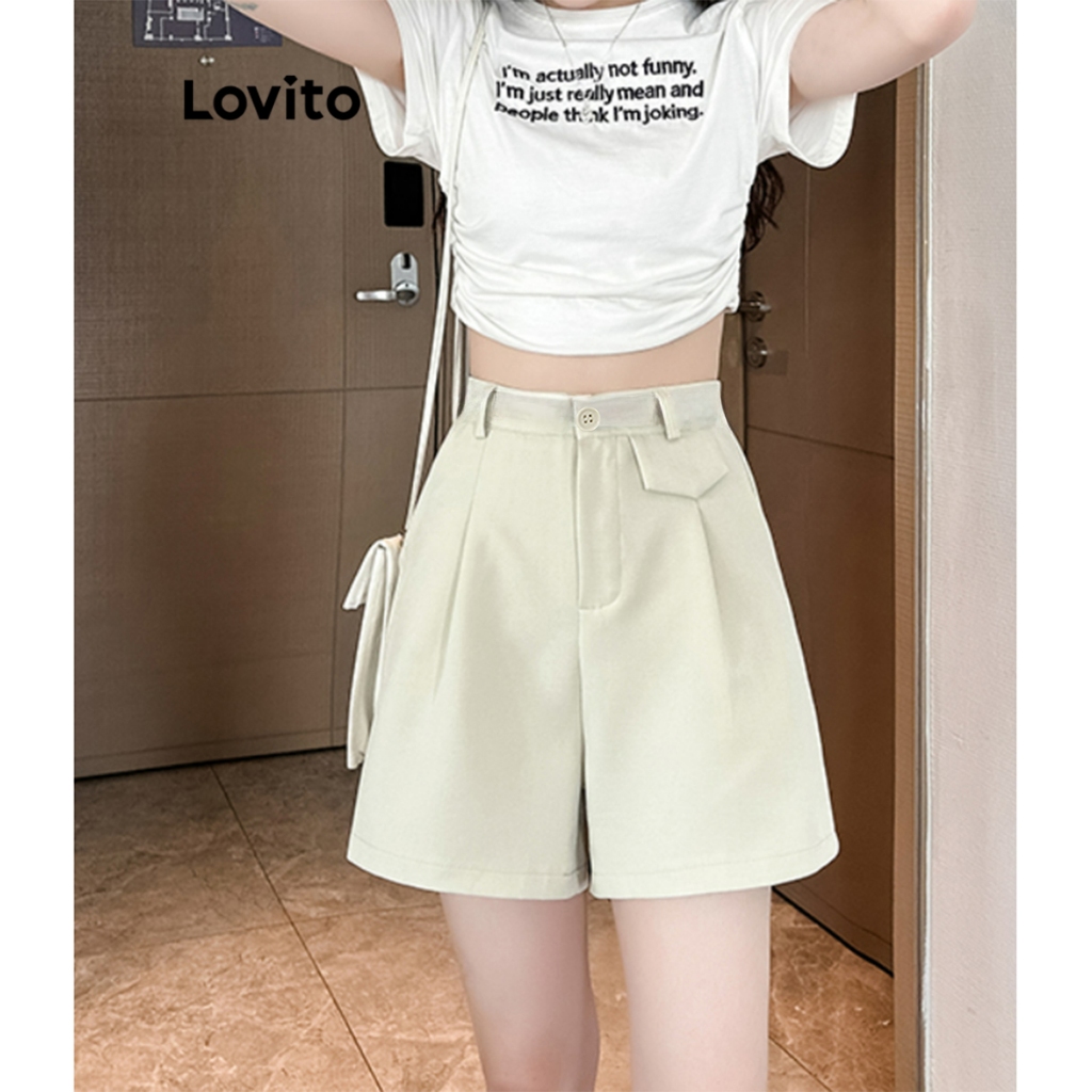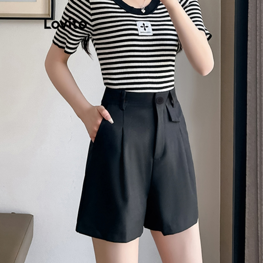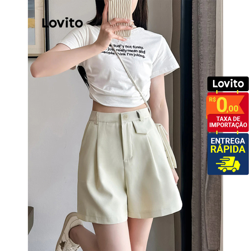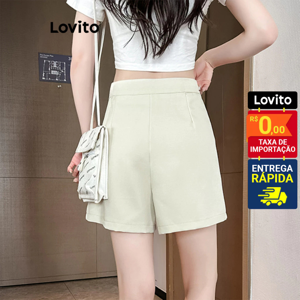 Lovito Bermuda Feminina Lisa alongada com Botão LNE31117