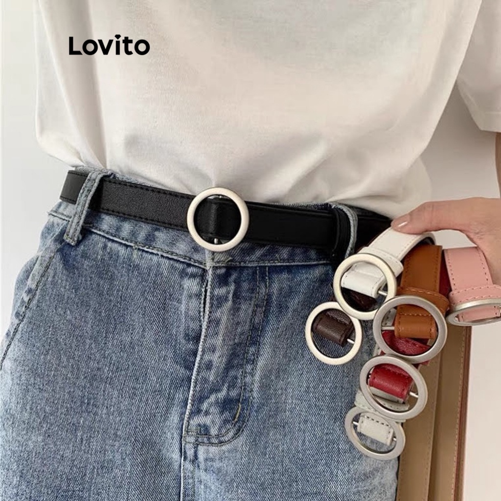 (Live Hosts' pick)Lovito Casual Cinto Liso Básico Não Poroso L38ED014 (Preto/Café/Marrom)