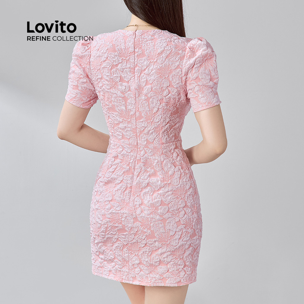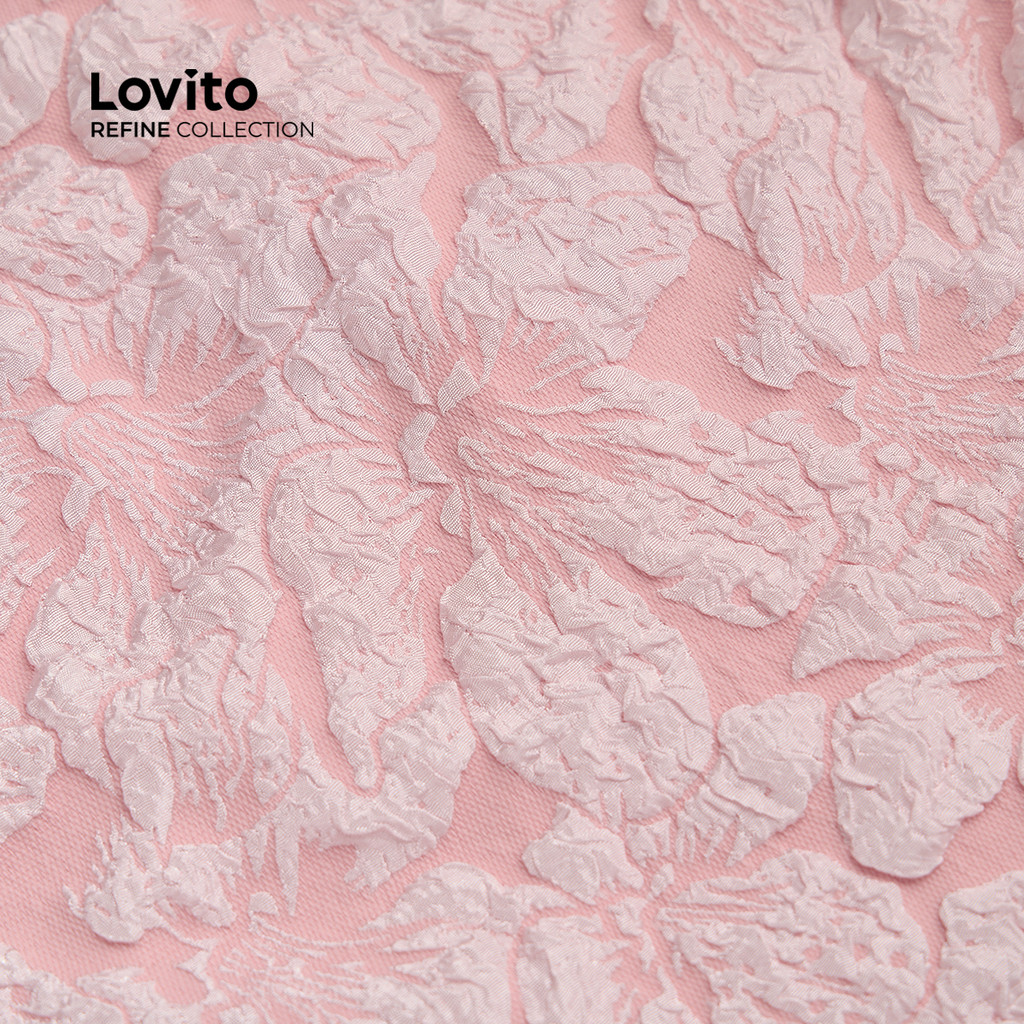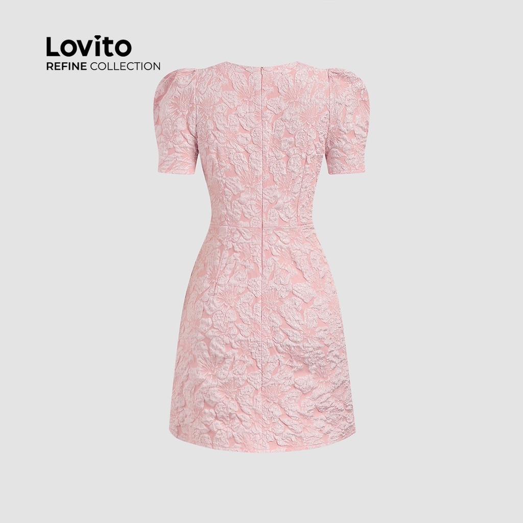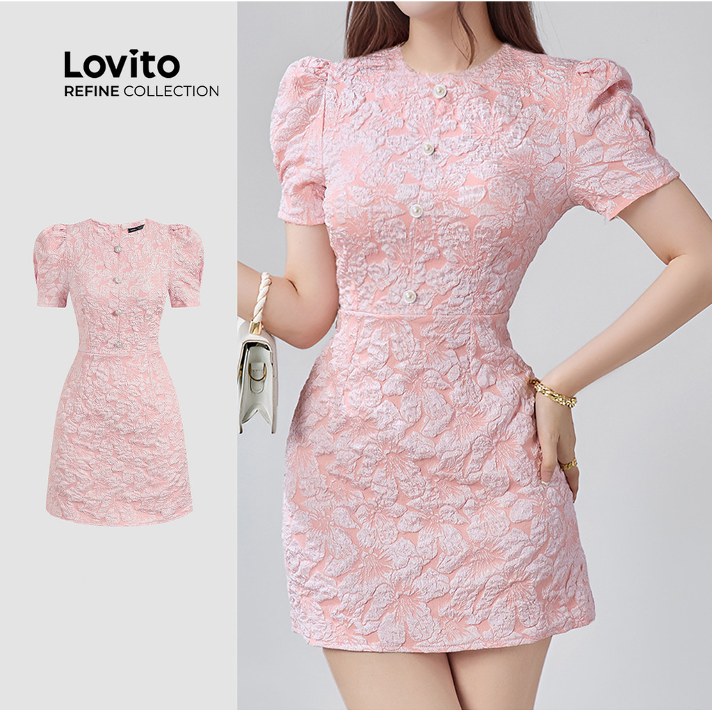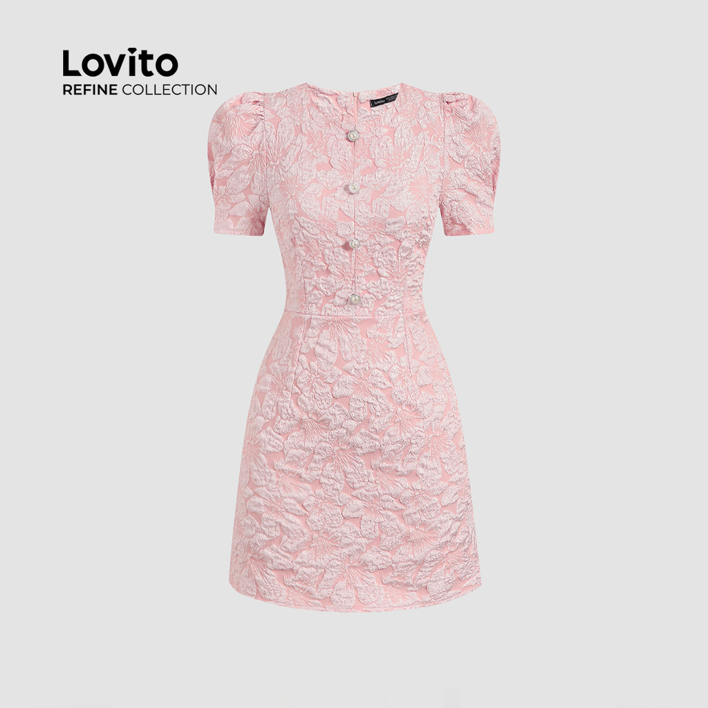 (NEW) (Refine by Lovito) Vestido Casual de Botões com Pregas e Pérolas para Primavera/verão Rosa para mulheres LR13A052