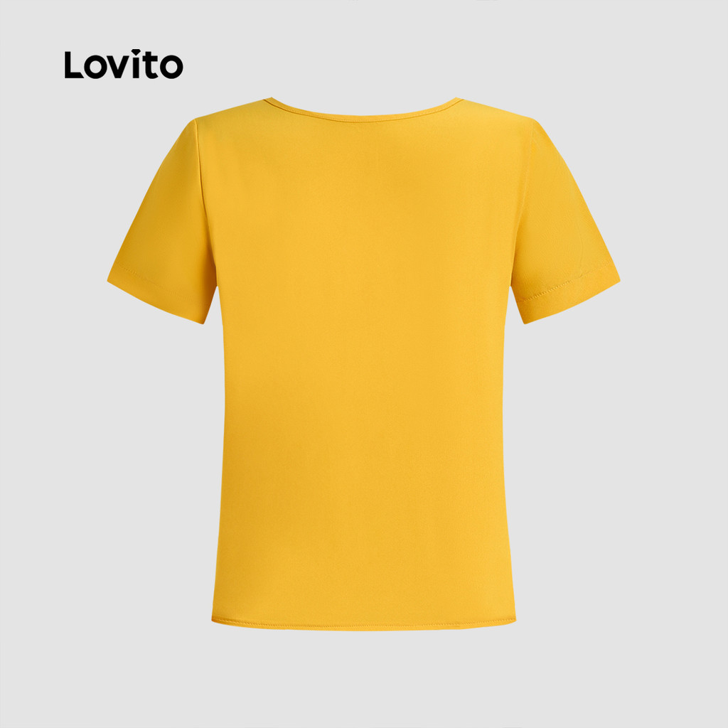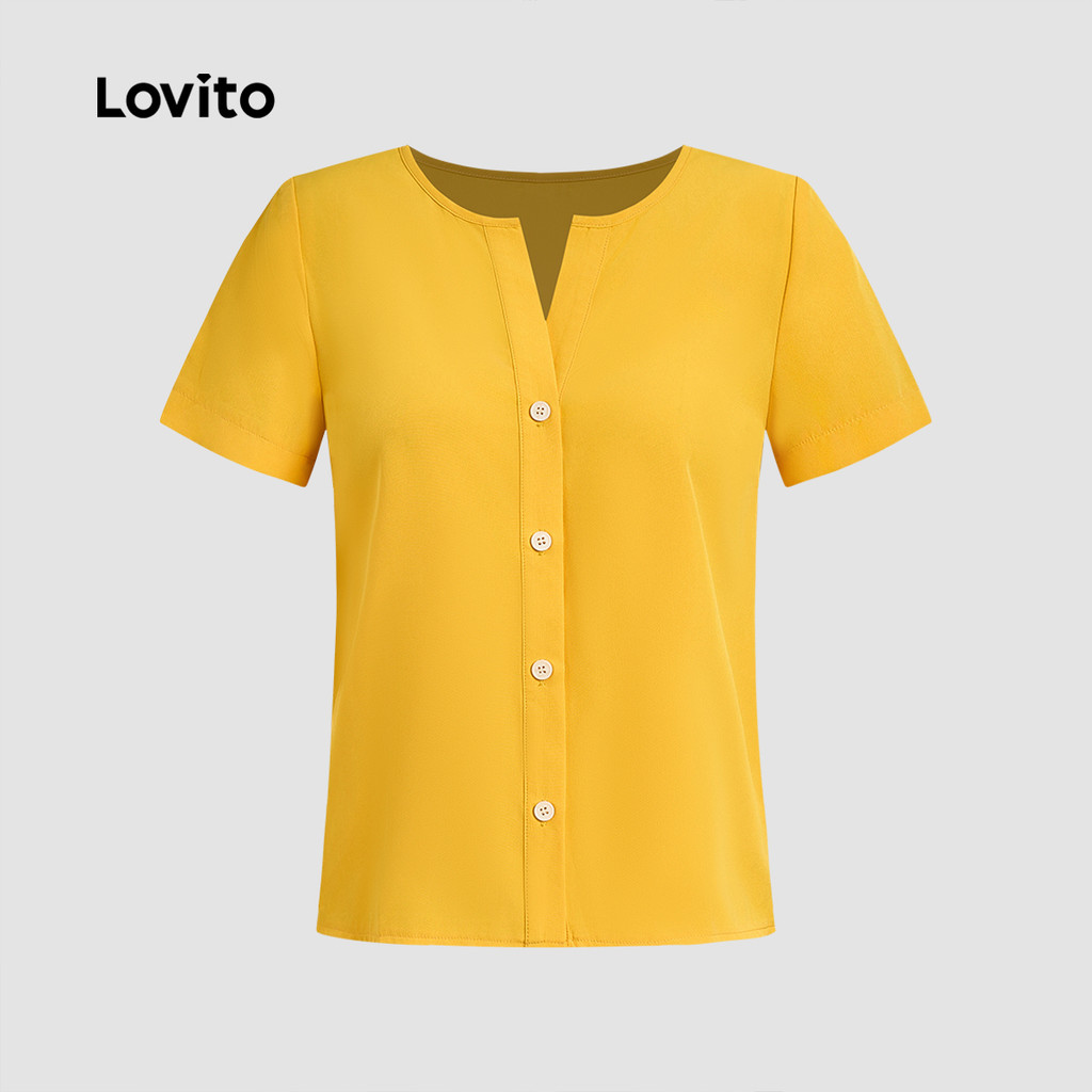 (New) Lovito Blusa Elegante de Botão Na Frente Simples Primavera/verão Blusa Leve Amarela para Mulheres L143ED016