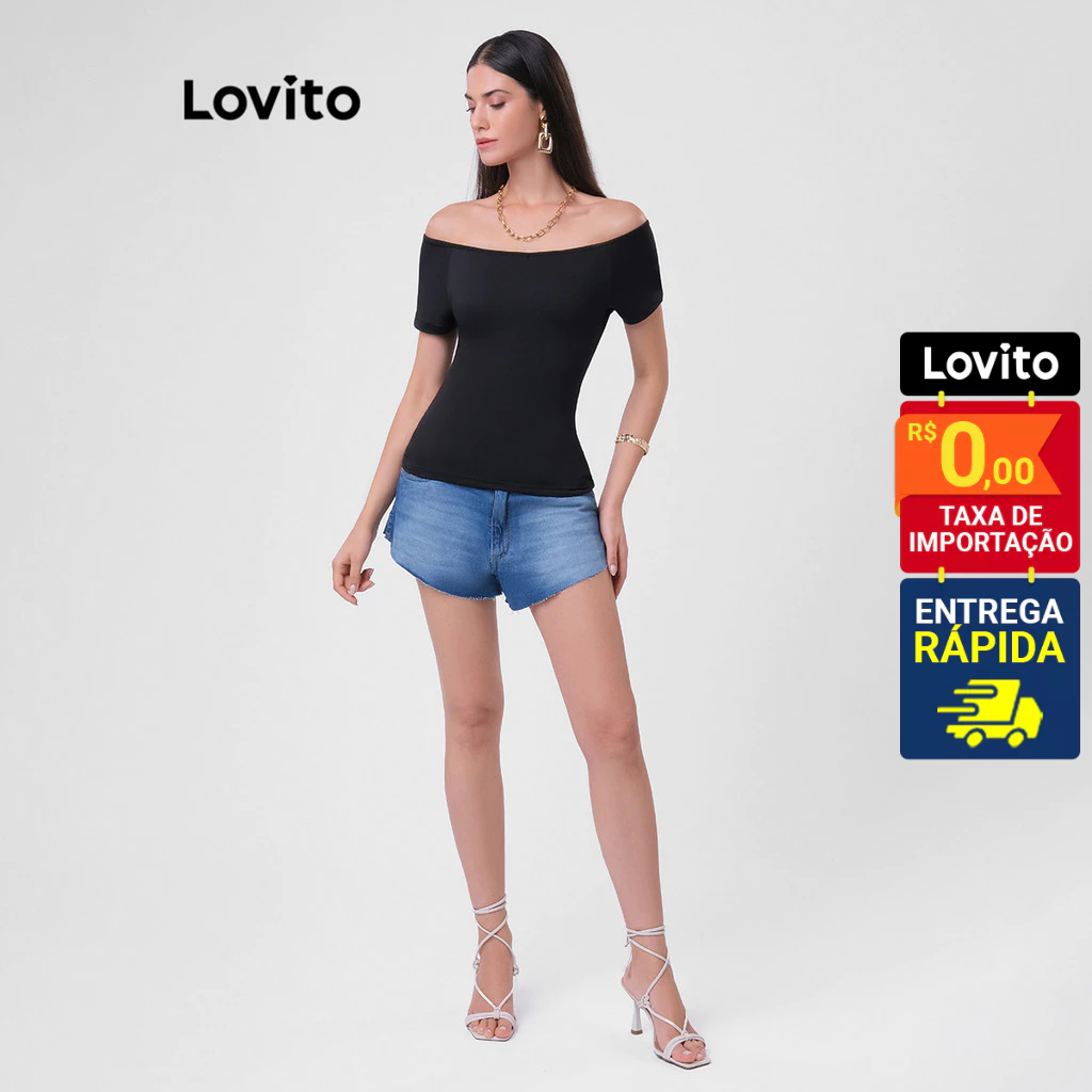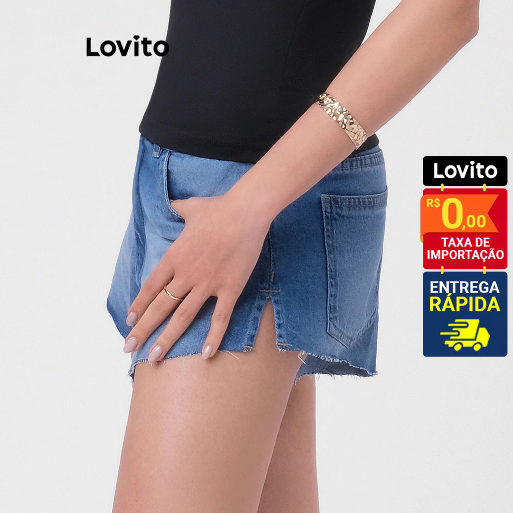 Lovito Shorts Jeans Feminino Curto Casual Básico LBRL050
