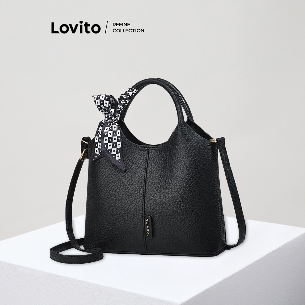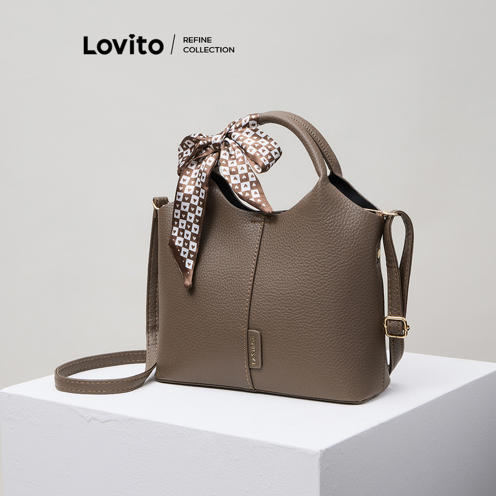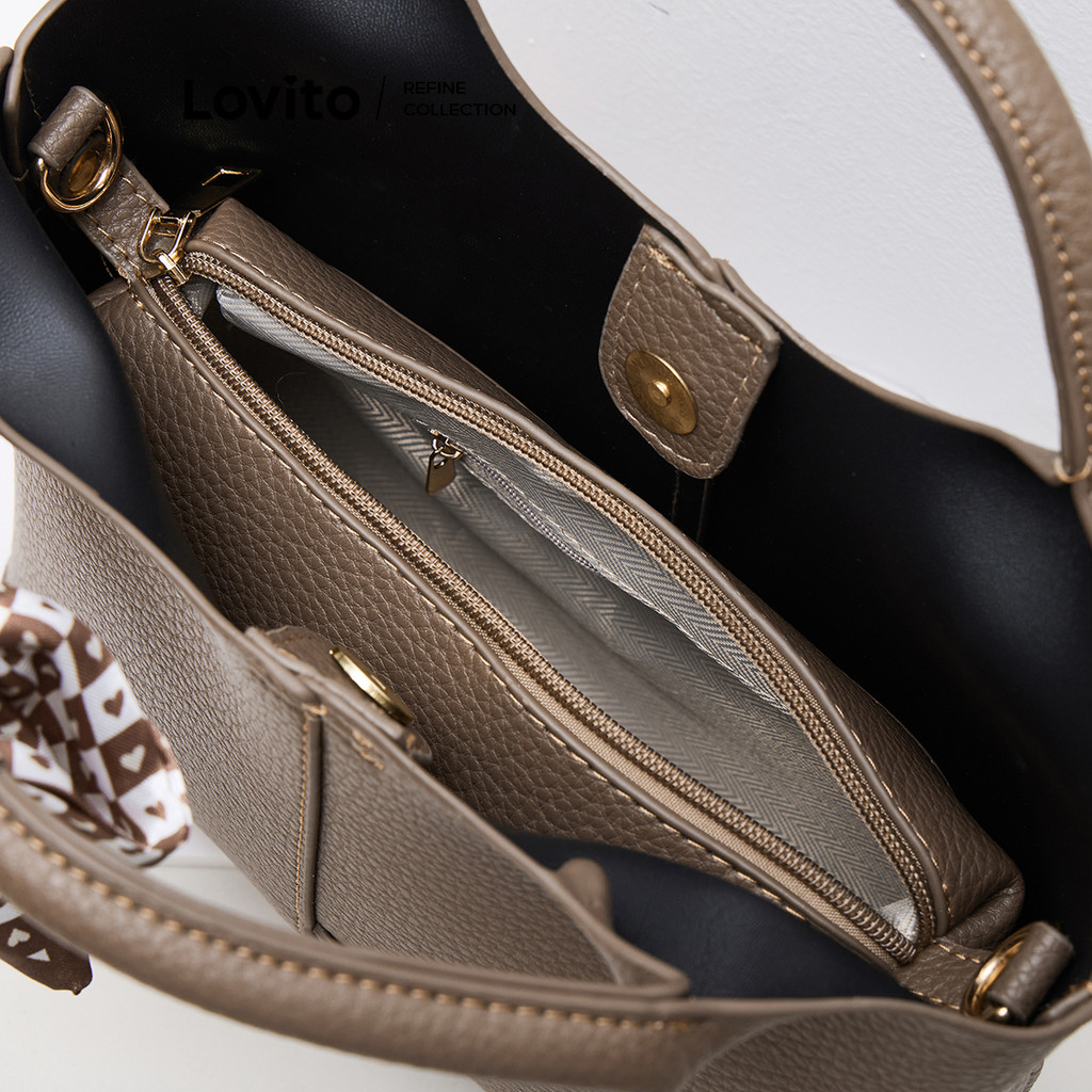 (KOL‘s pick) Lovito Bolsa casual simples tipo balde bolsa tiracolo de ombro para mulheres LFA53169