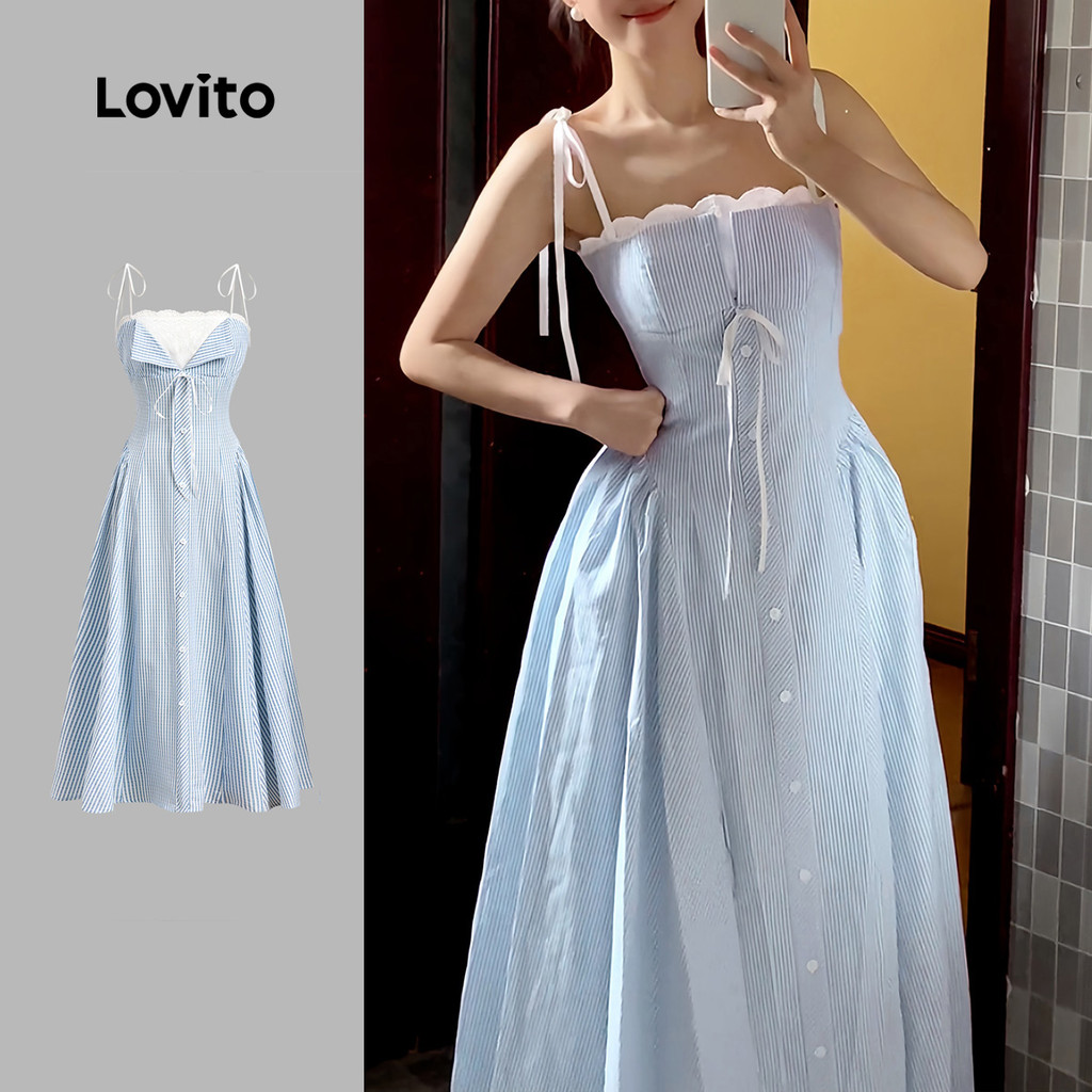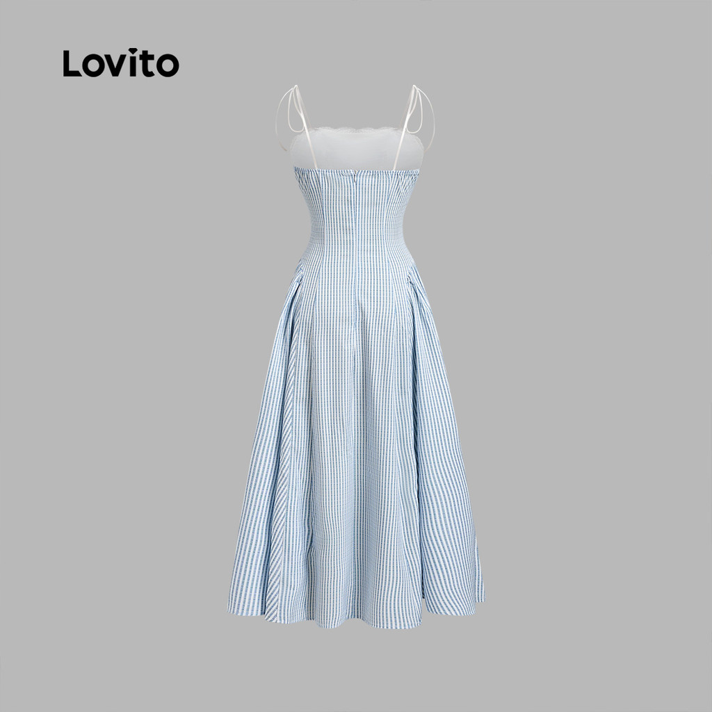 Lovito Vestido Casual Feminino de Renda para Primavera/Verão Azul L144AD305