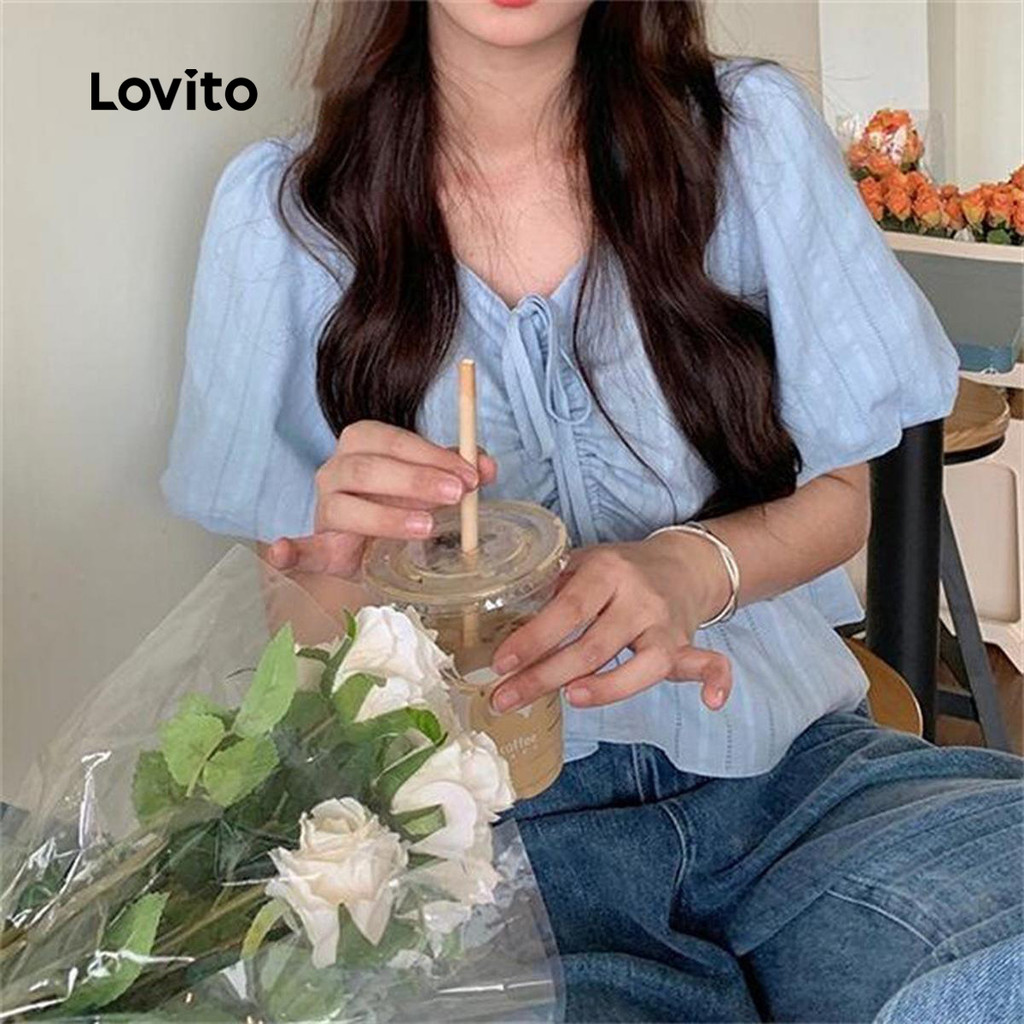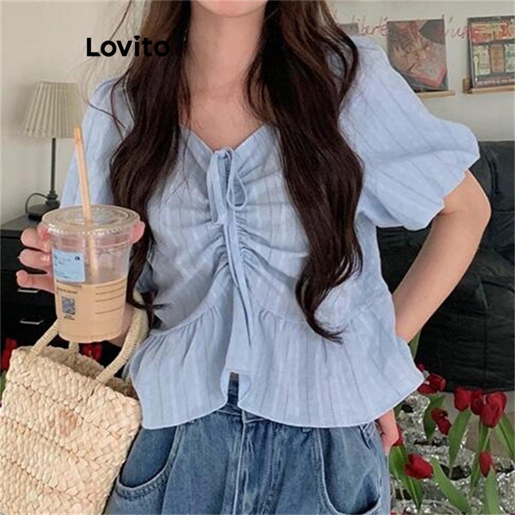 Lovito Blusa Casual Listrada Com Estampa Franzida Para Mulheres LNE71762