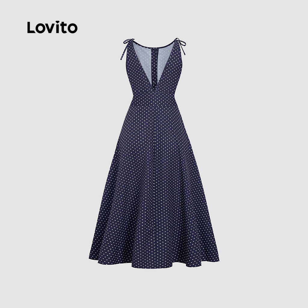 Lovito Vestido Elegante com Botões Na Frente Amarra Na Frente Primavera/verão Vestido Azul prússia L155ED722