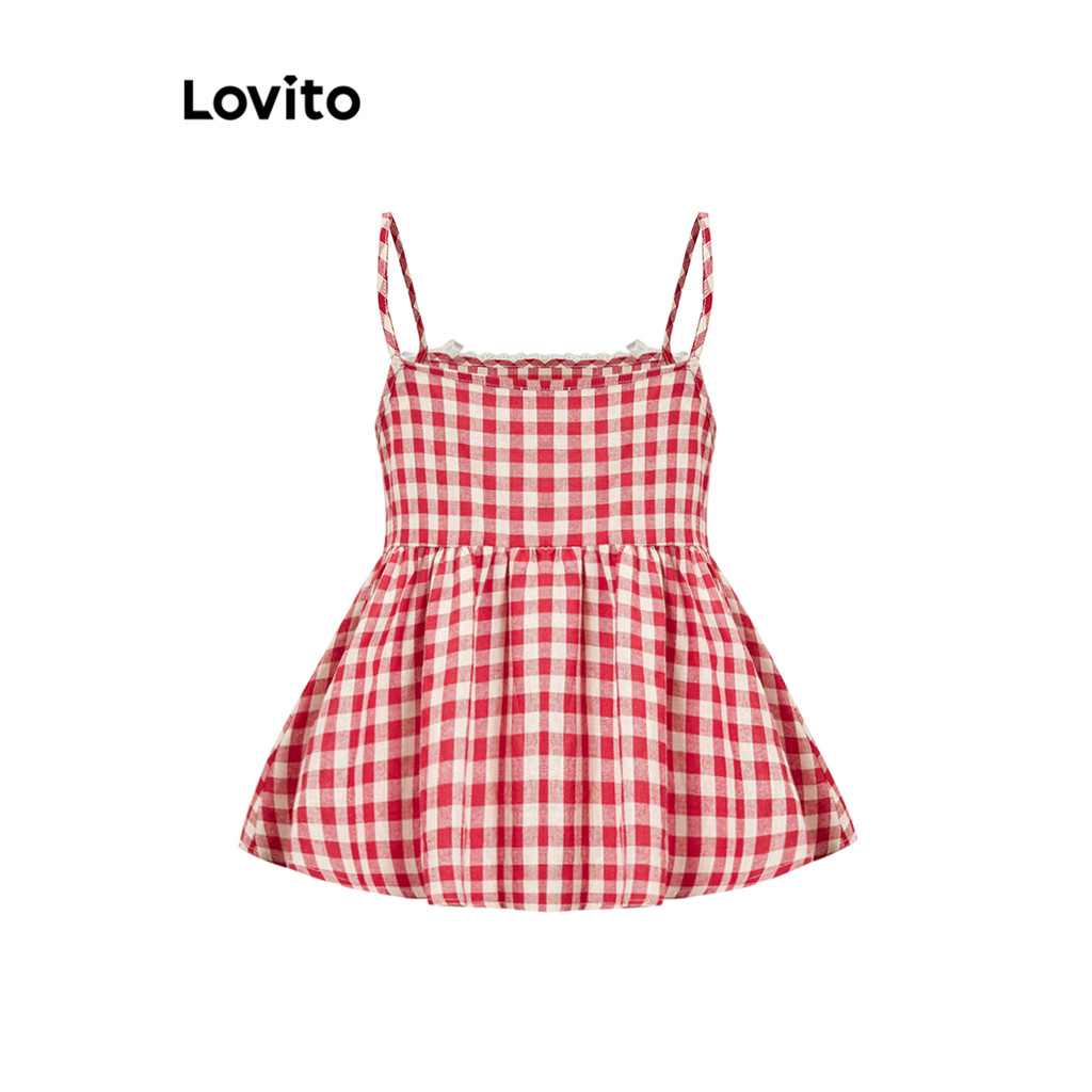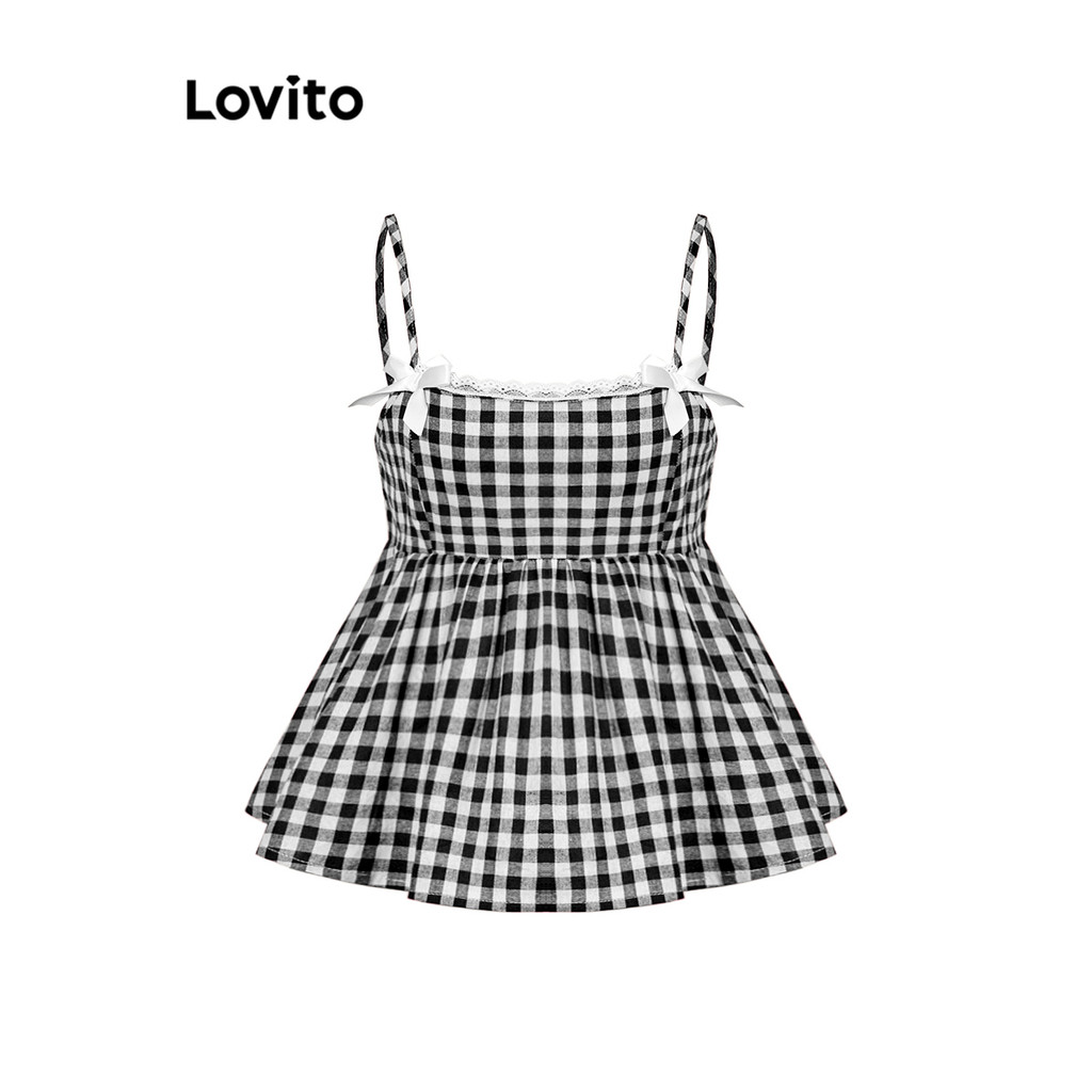 Lovito Regata Feminina Fofa Com Estampa Xadrez Vichy Gola Com Babados E Laço Modelo L97ad078 (multicolorida)