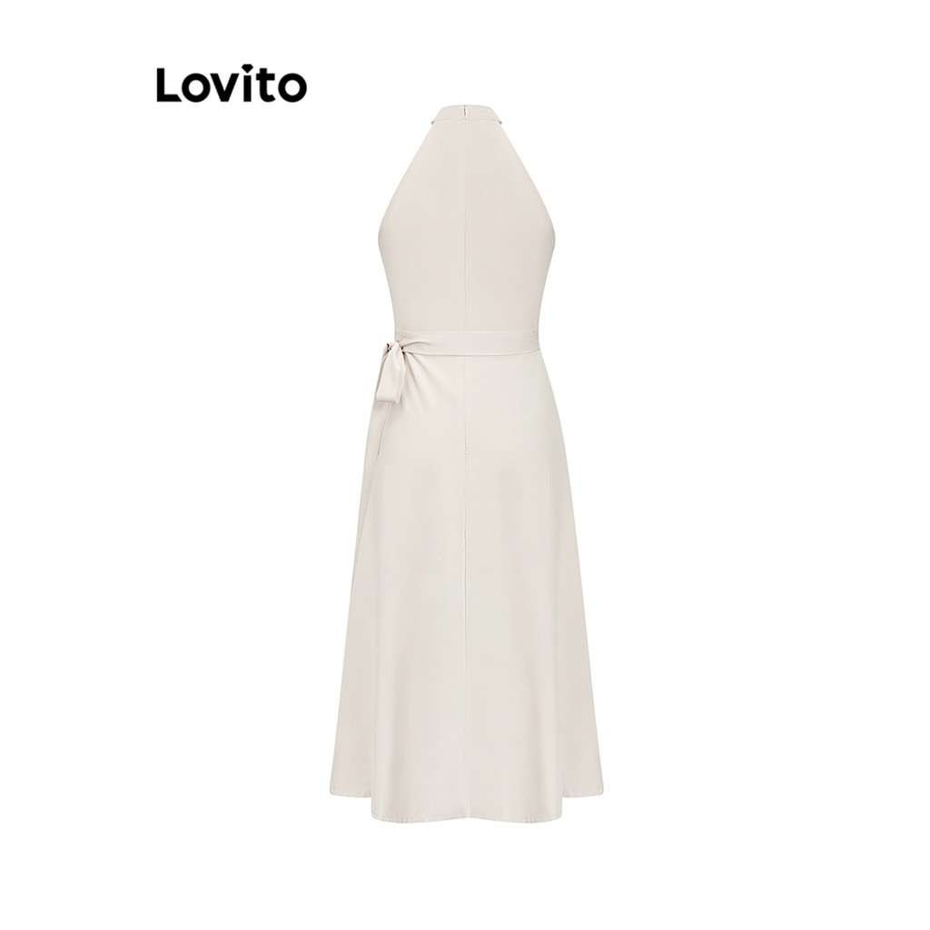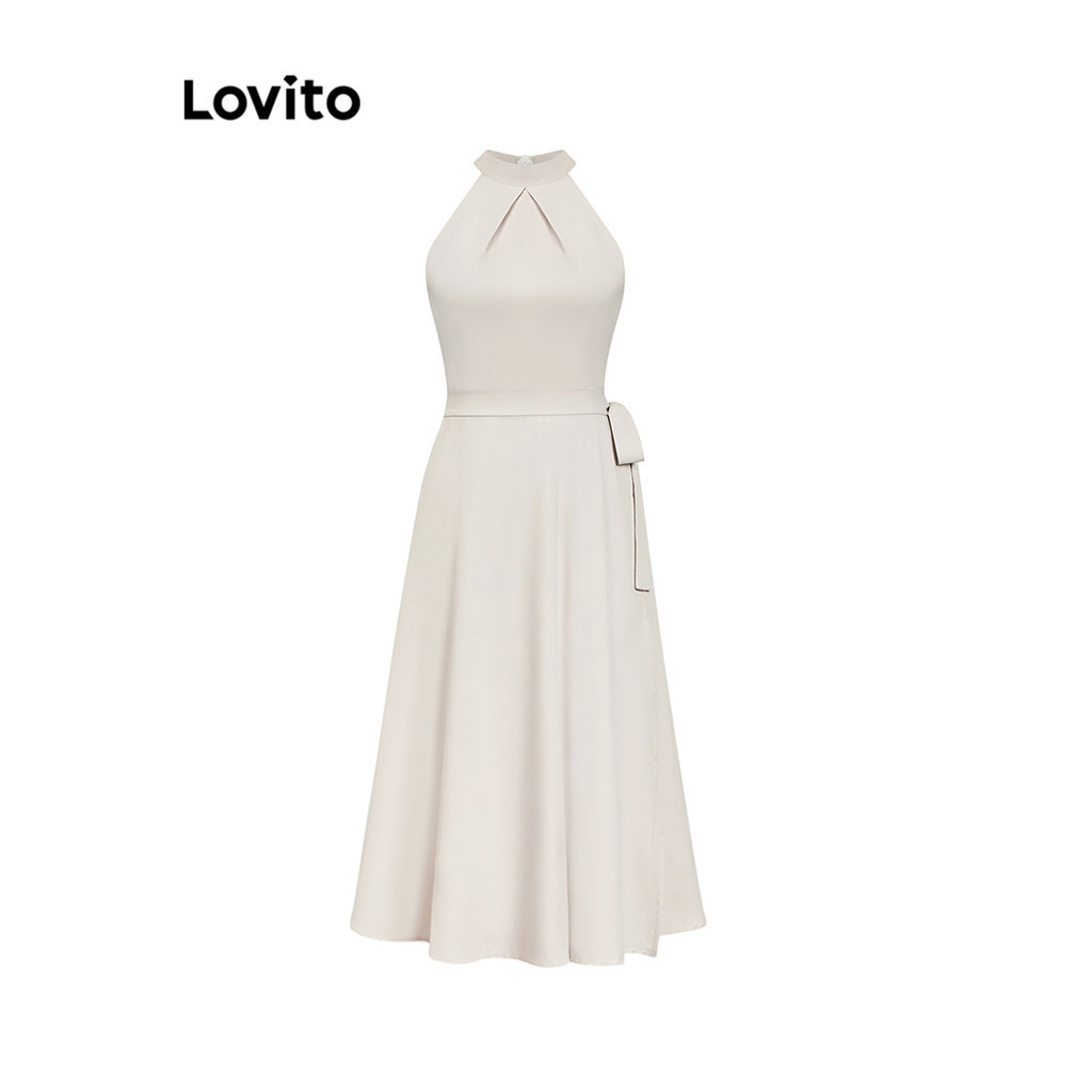 Lovito Vestido Elegante Vestido Plissado Liso Para Mulheres L95ED099