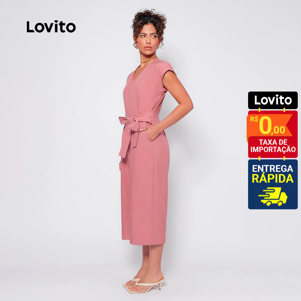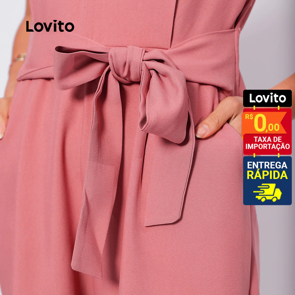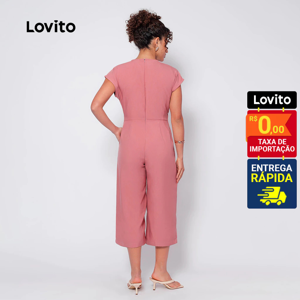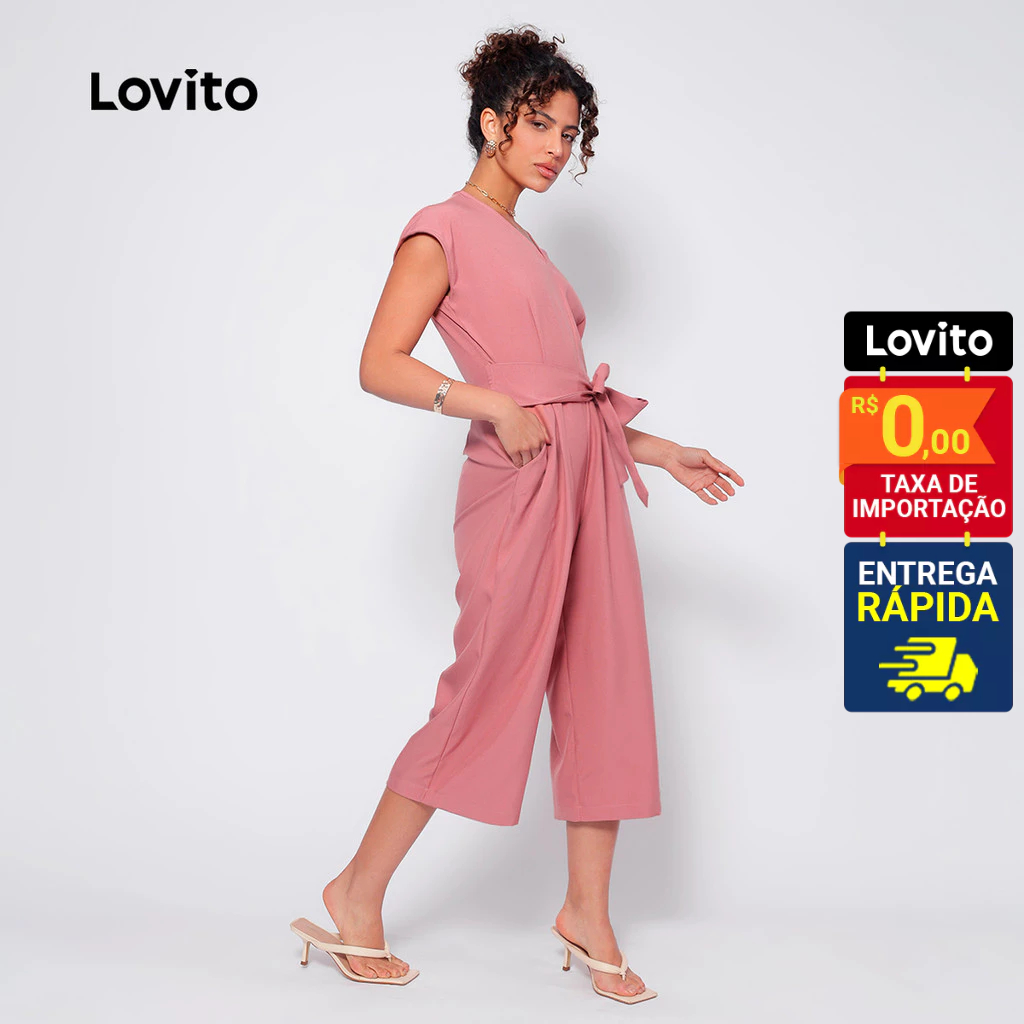Lovito Macacão Feminino Pantacourt Amarração Cintura LB233BRL262