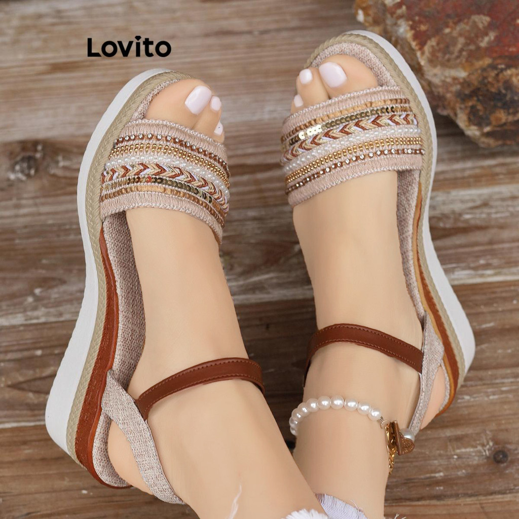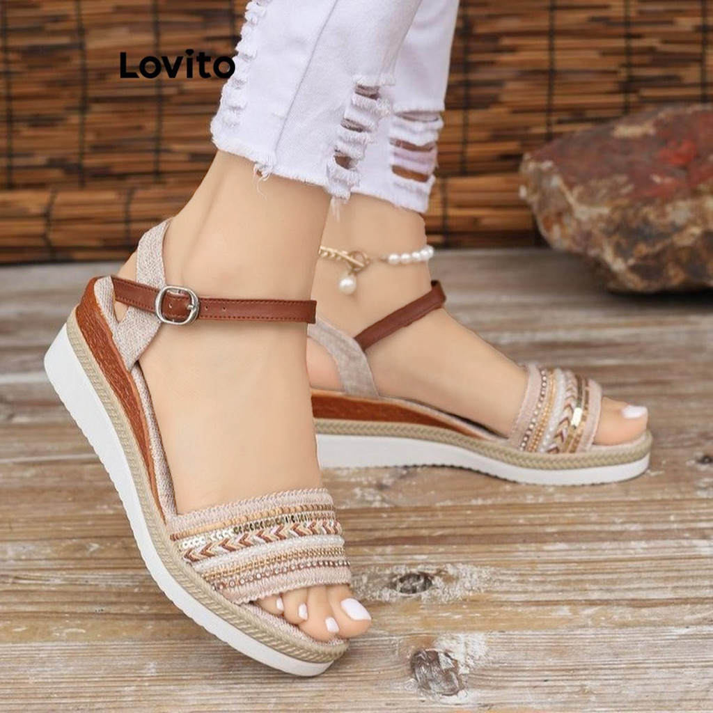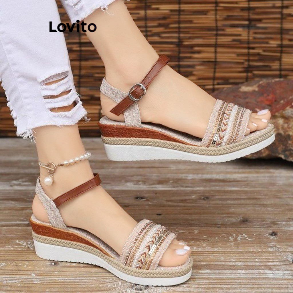 Lovito Sandálias Boho lisas com sola grossa e confortáveis para mulheres LFA65321