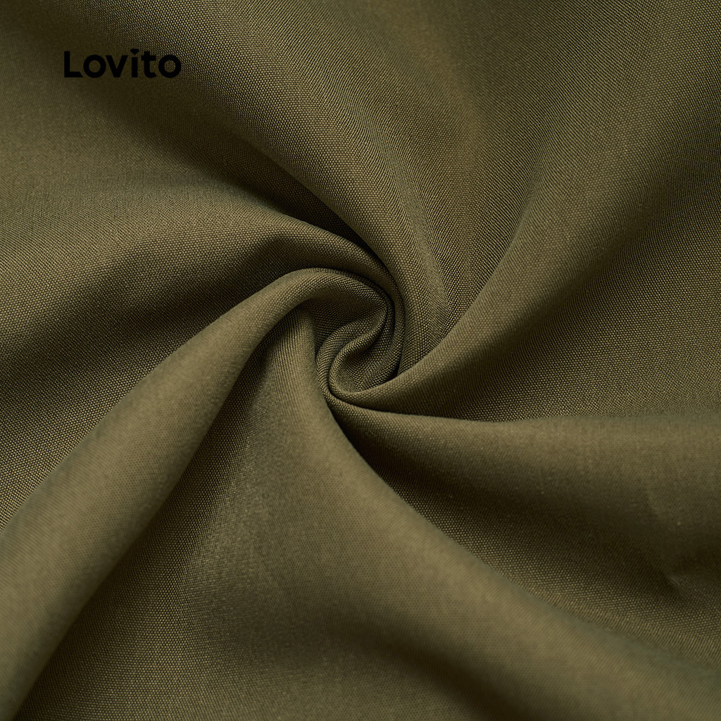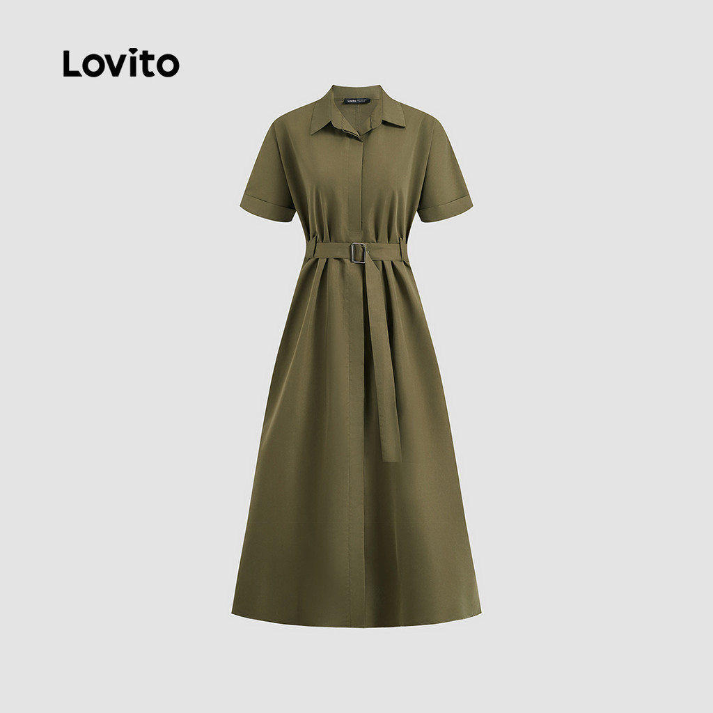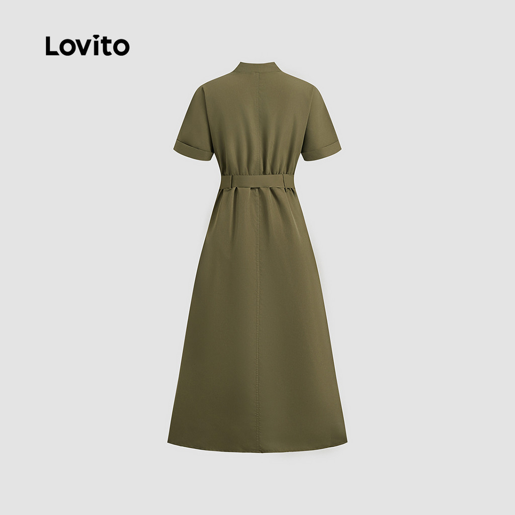 (Trendy) Lovito Vestido elegante liso com cinto e botão para mulheres LBL23506