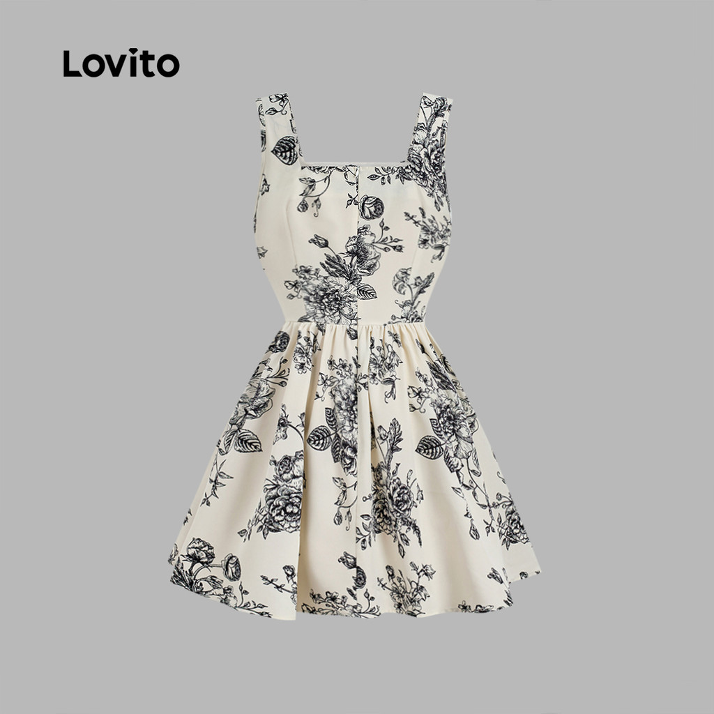 Lovito Vestido Boho com Flores Estrutura de Linha Vestido de Primavera/verão para mulheres L155ED1508