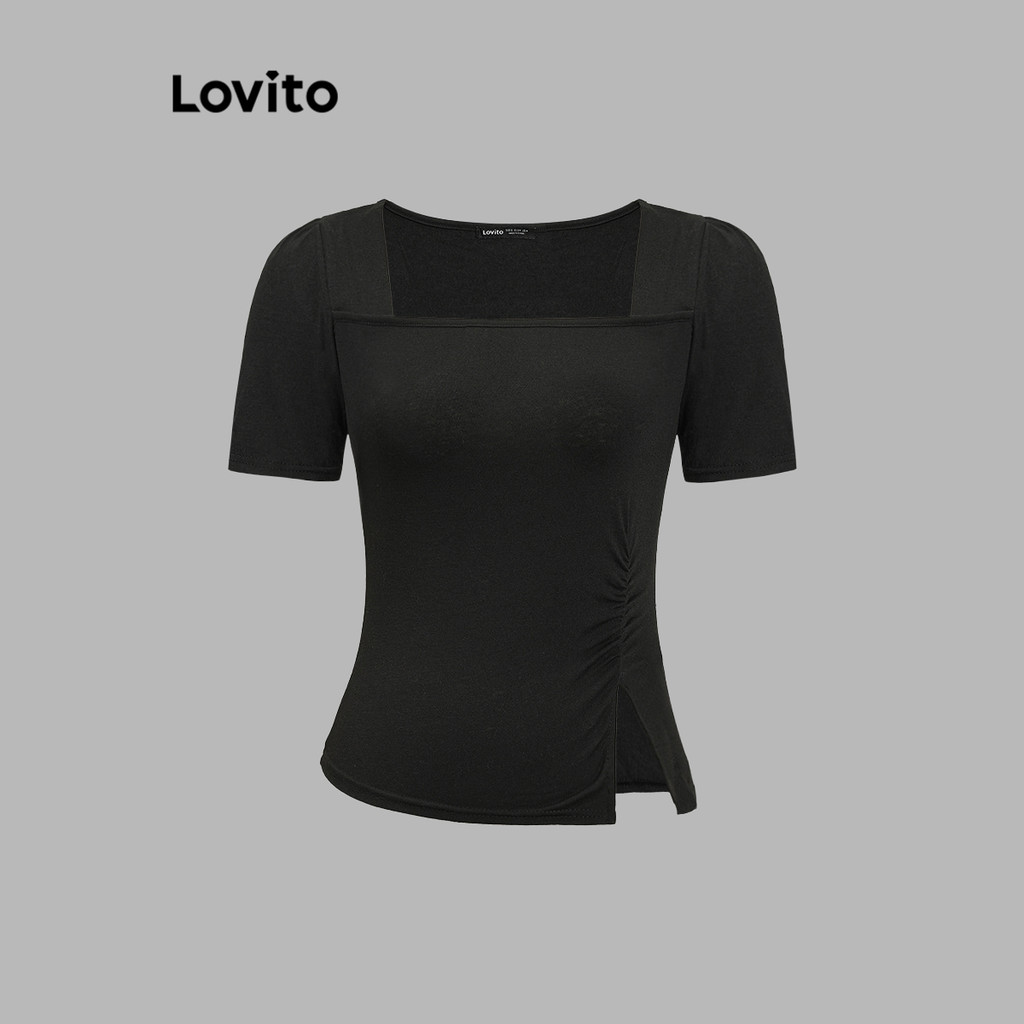 Lovito Camiseta Elegante Verão Verão Dividida Para Mulheres L91ED094 (Multicolorido)