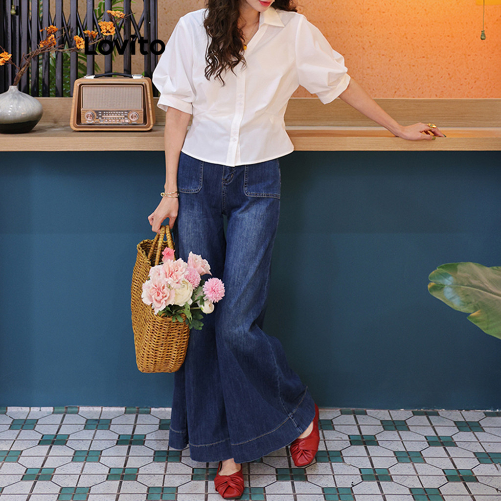 Lovito Blusa Casual Blusa Plissada Lisa Para Mulheres LNE73710