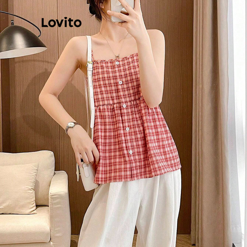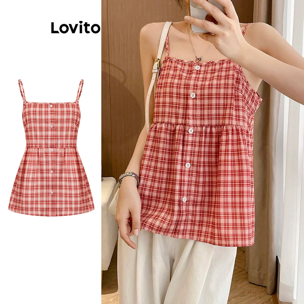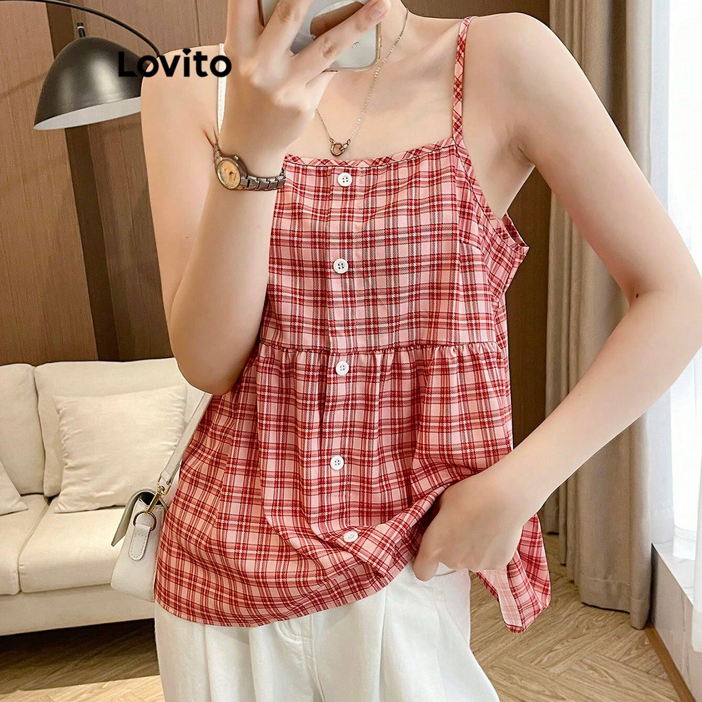 Lovito Regata Feminina Casual De Verão Com Estampa Xadrez Vichy E Botões Frontais L105MD041