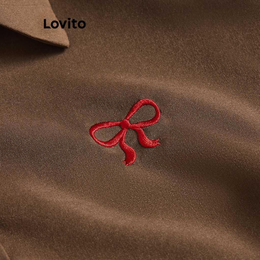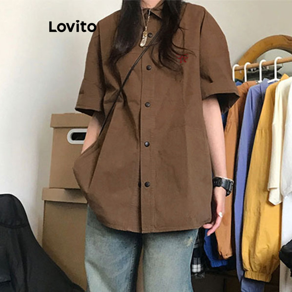 Lovito Blusa Casual Com Bordado Liso E Botão Frontal Para Mulheres L122AD002