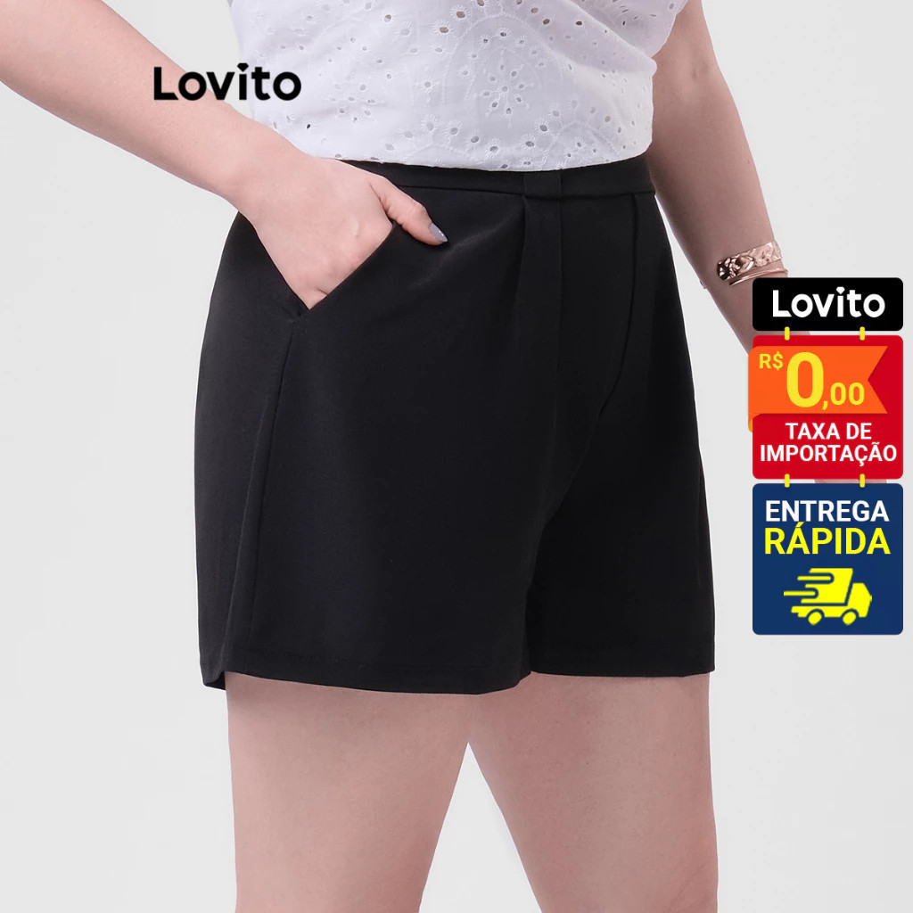 Lovito Shorts Curto Feminino Plus Size Alfaiatria Liso LB72BRL101