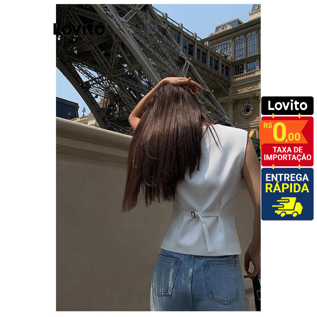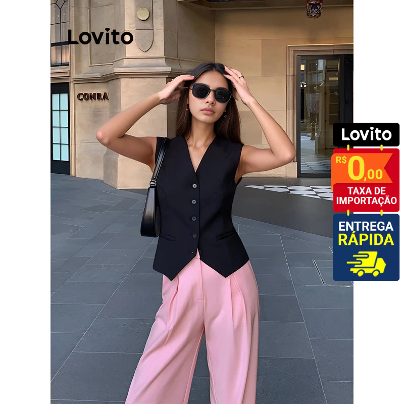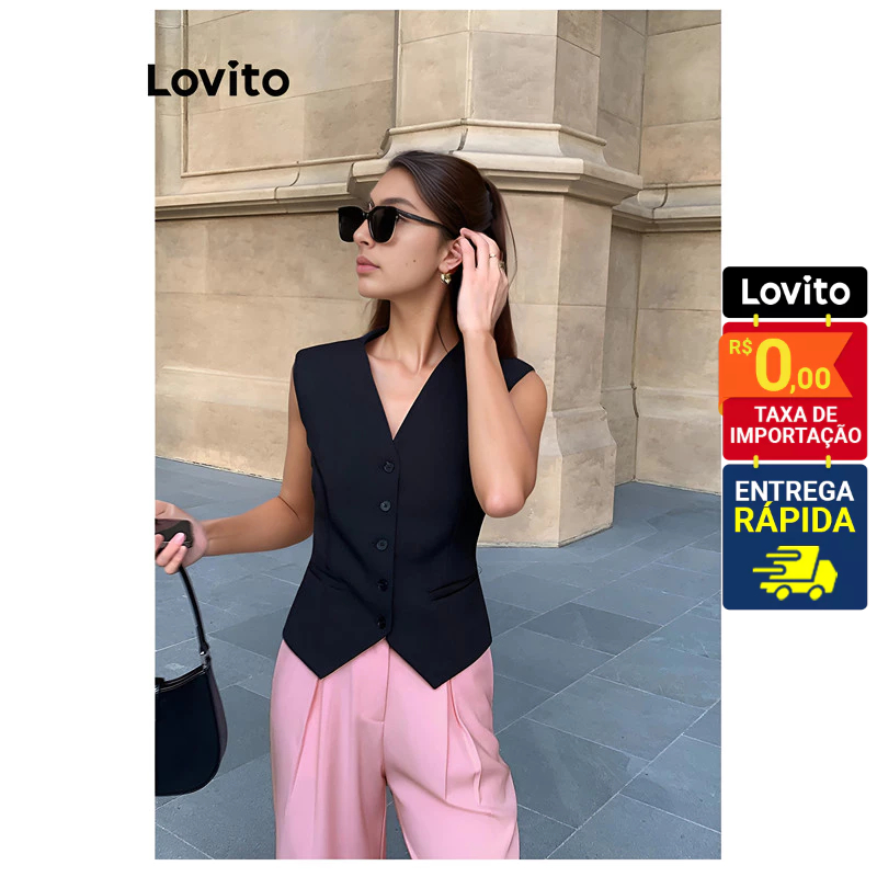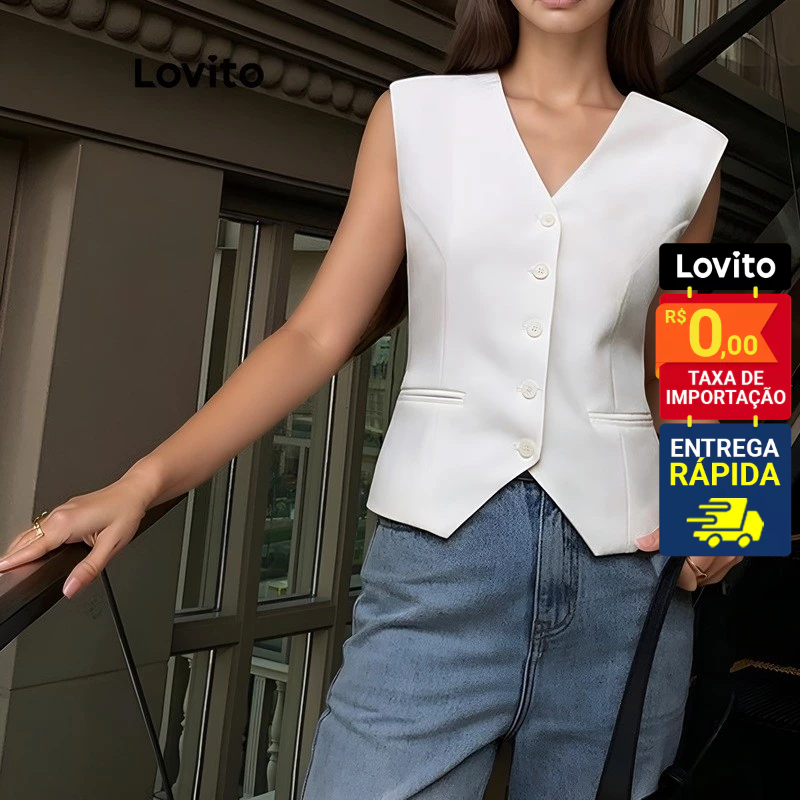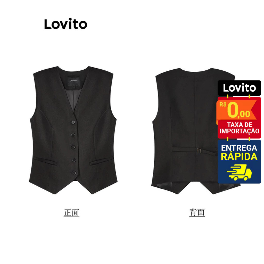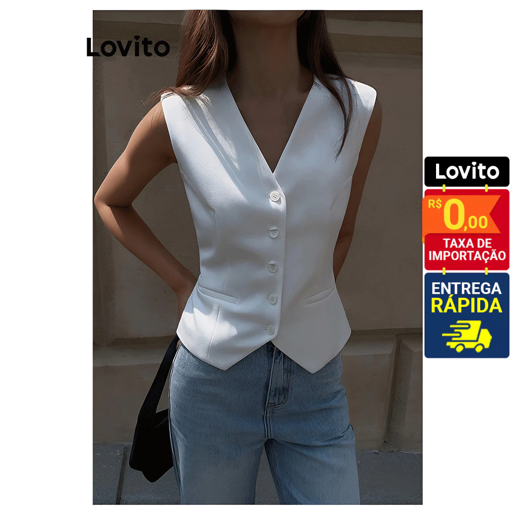 Lovito Colete Feminino Liso com Botão frontal e regulador costas LNE50484