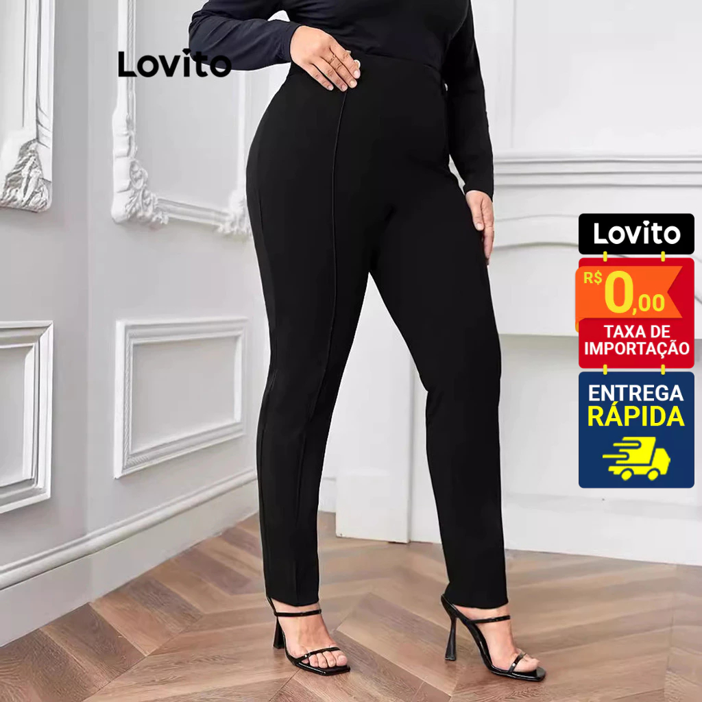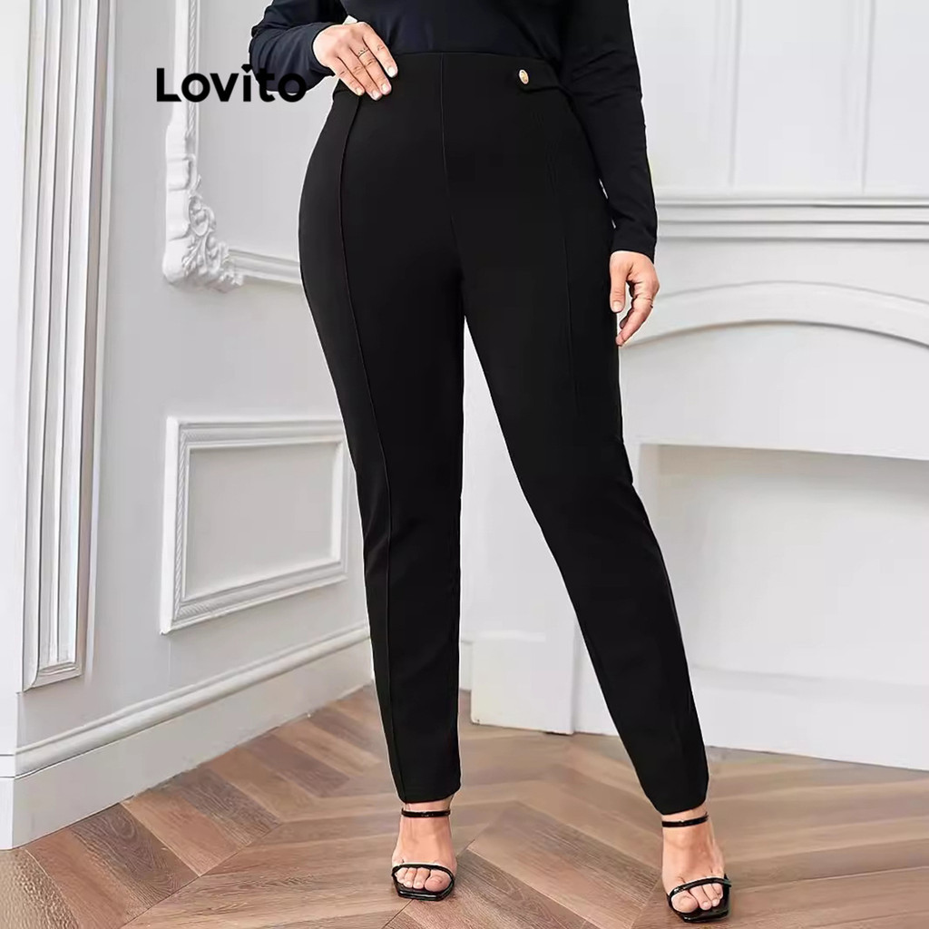 Lovito Calça Feminina Skinny Detalhe Botão Plus Size LNL60205