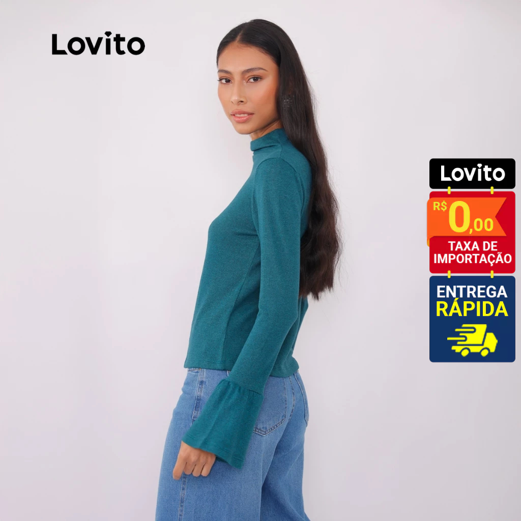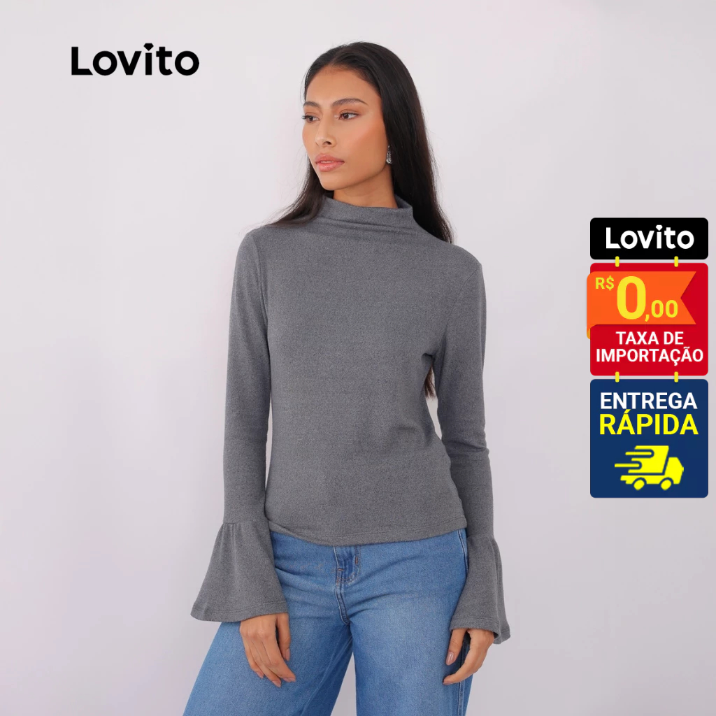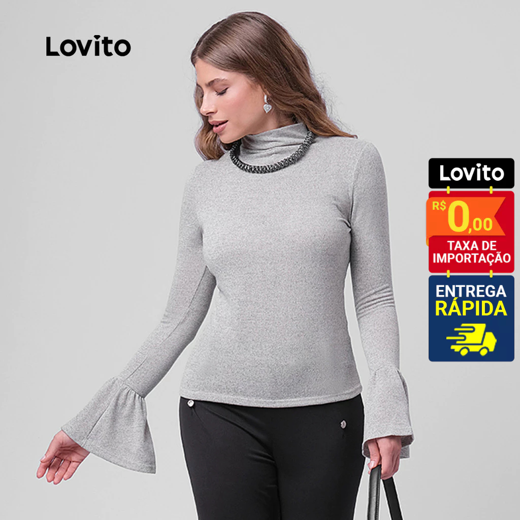 Lovito Blusa Feminina Tricot Leve Manga Longa Gola Alta Manga Sino LB368BRL397