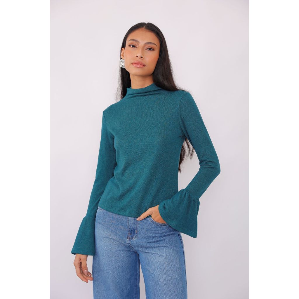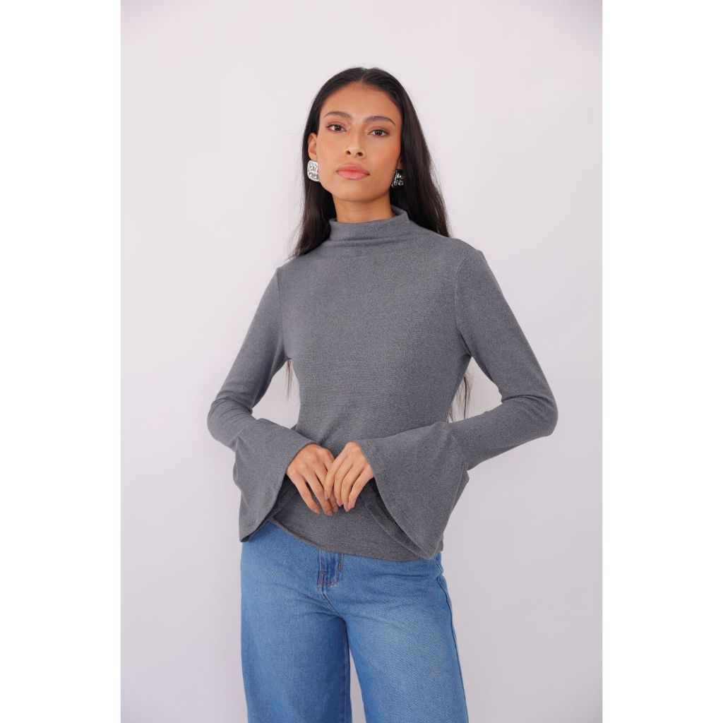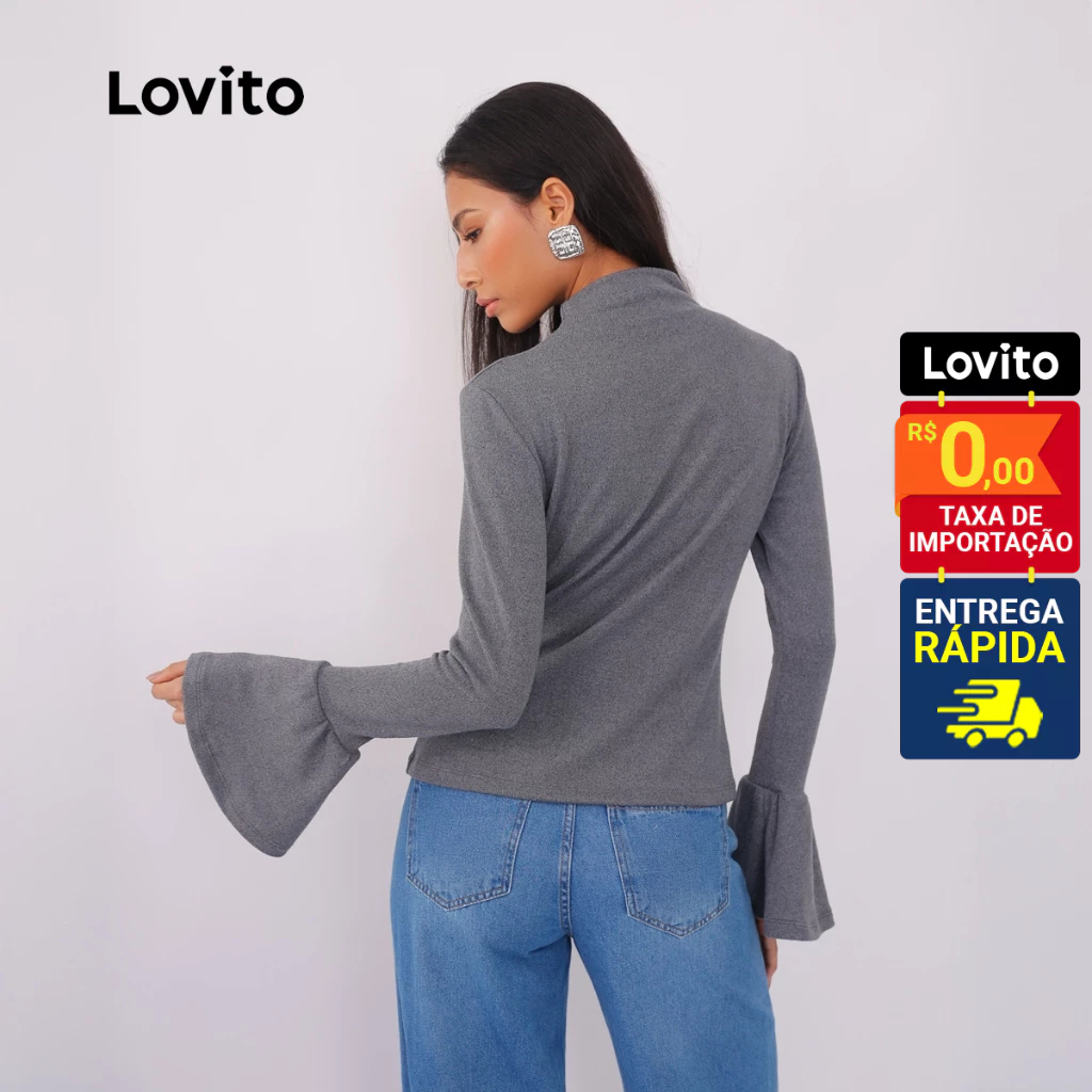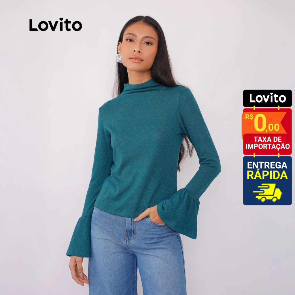 Lovito Blusa Feminina Tricot Leve Manga Longa Gola Alta Manga Sino LB368BRL397