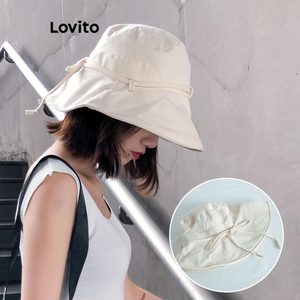 Chapéu Feminino Casual Lovito com Laço Liso, Estilo Básico, Modelo LFA21066