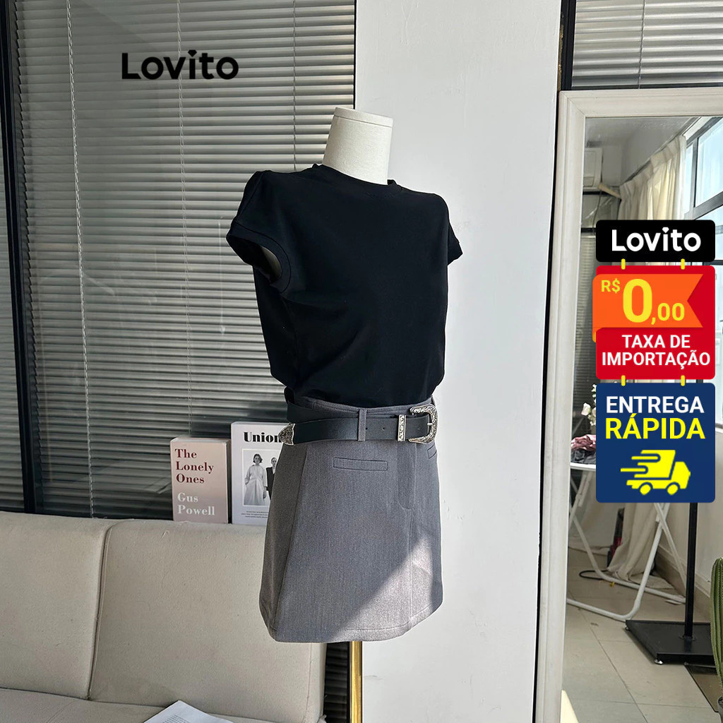 Lovito Camiseta Casual Feminina Manga Curta Lisa Básica sem cava LNE50314