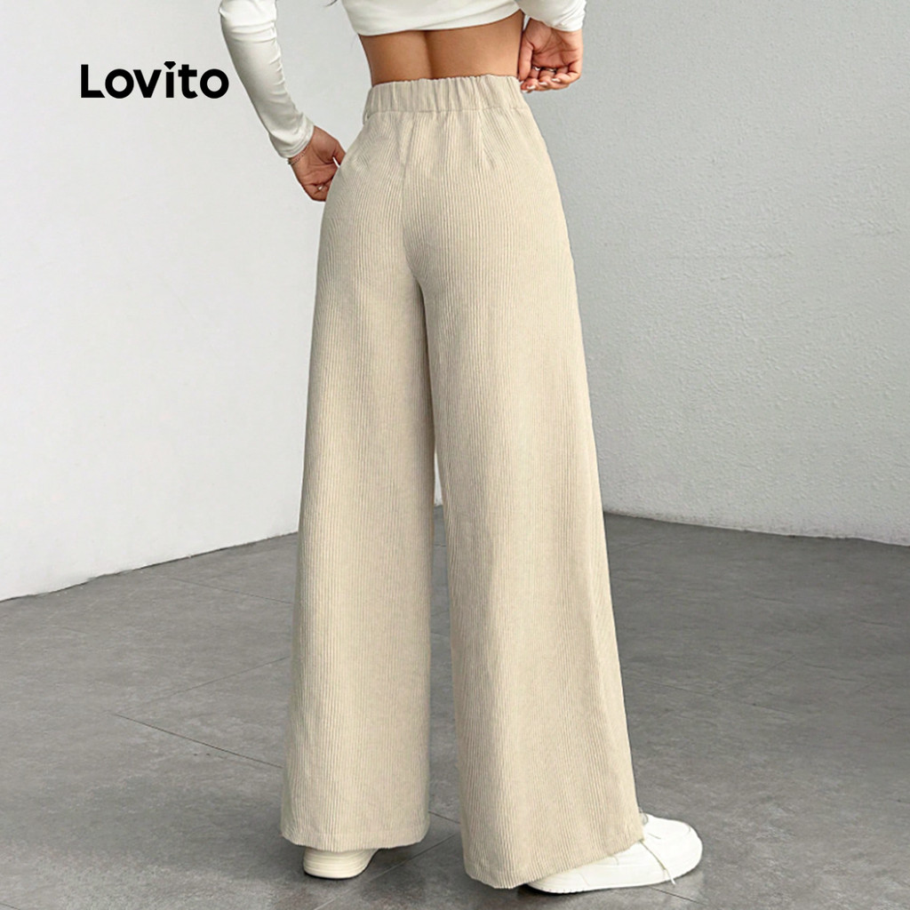 Lovito Calças Casuais Zíper Bolso Falso Botão Todas As Estações Calças Cáqui Clássica E Versátil para Mulheres L154ED040