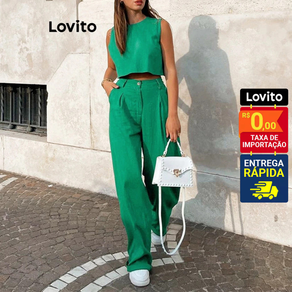 Lovito Conjunto Feminino Casual Regata e Calça LNL35036