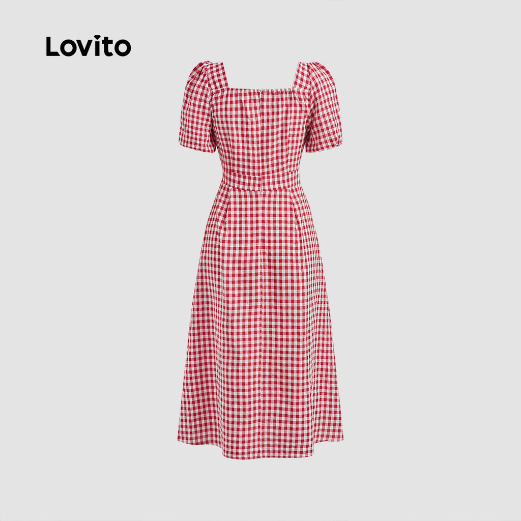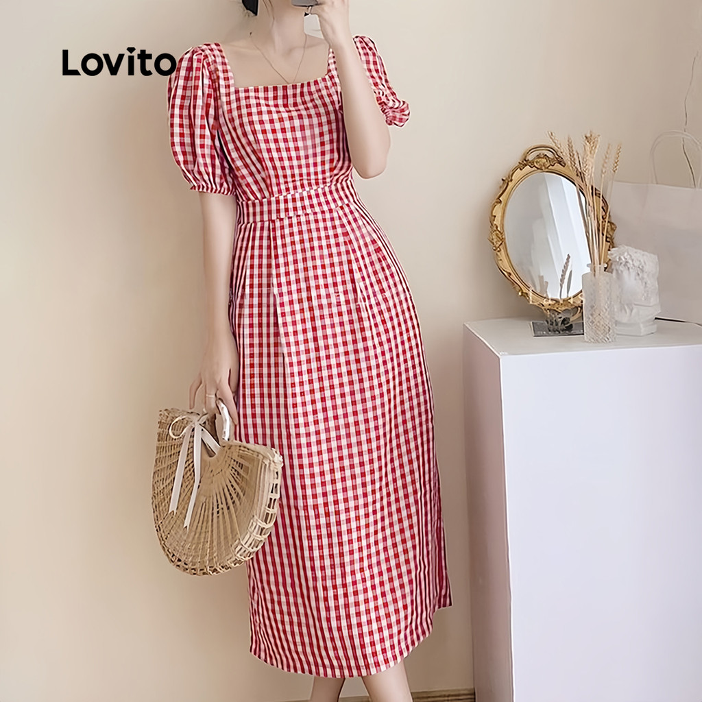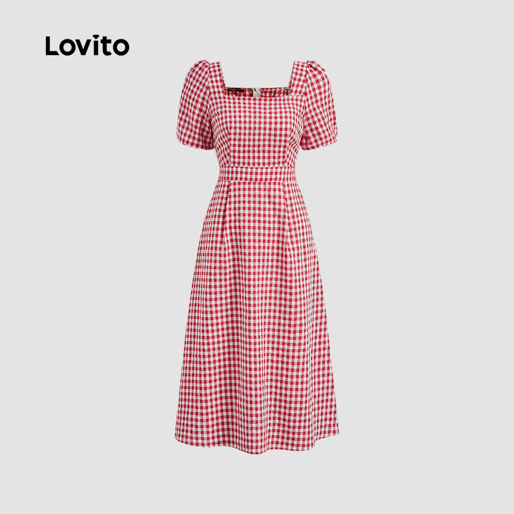 (Trendy) Lovito Vestido geométrico liso elegante para mulheres L128ED396