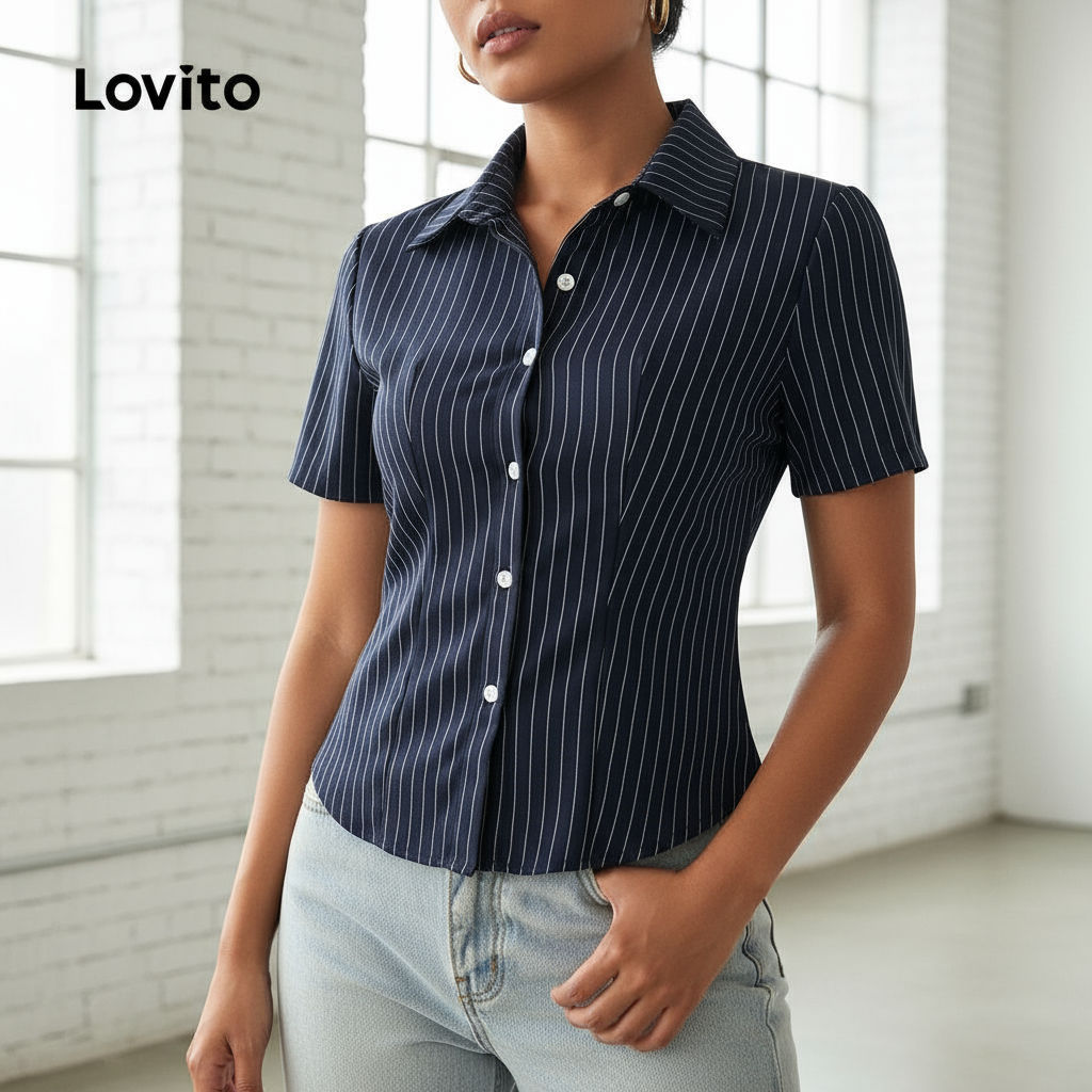 Blusa Feminina Lovito Estampada com Botão Redondo - Elegante para Verão/Primavera LBL23387
