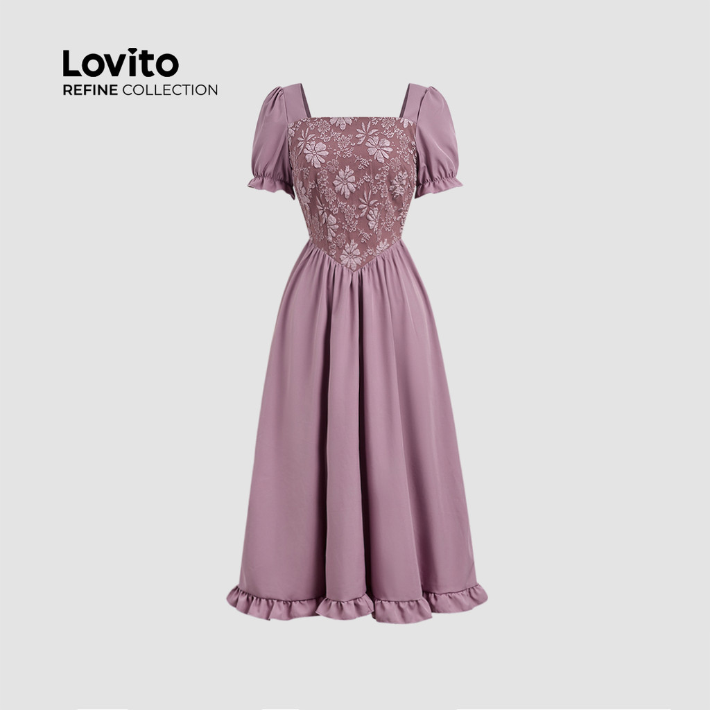 (Refine by Lovito) Tecido de Vestido Elegante com Costura Jacquard Estrutura de Linha Primavera/verão rosa LR21E002