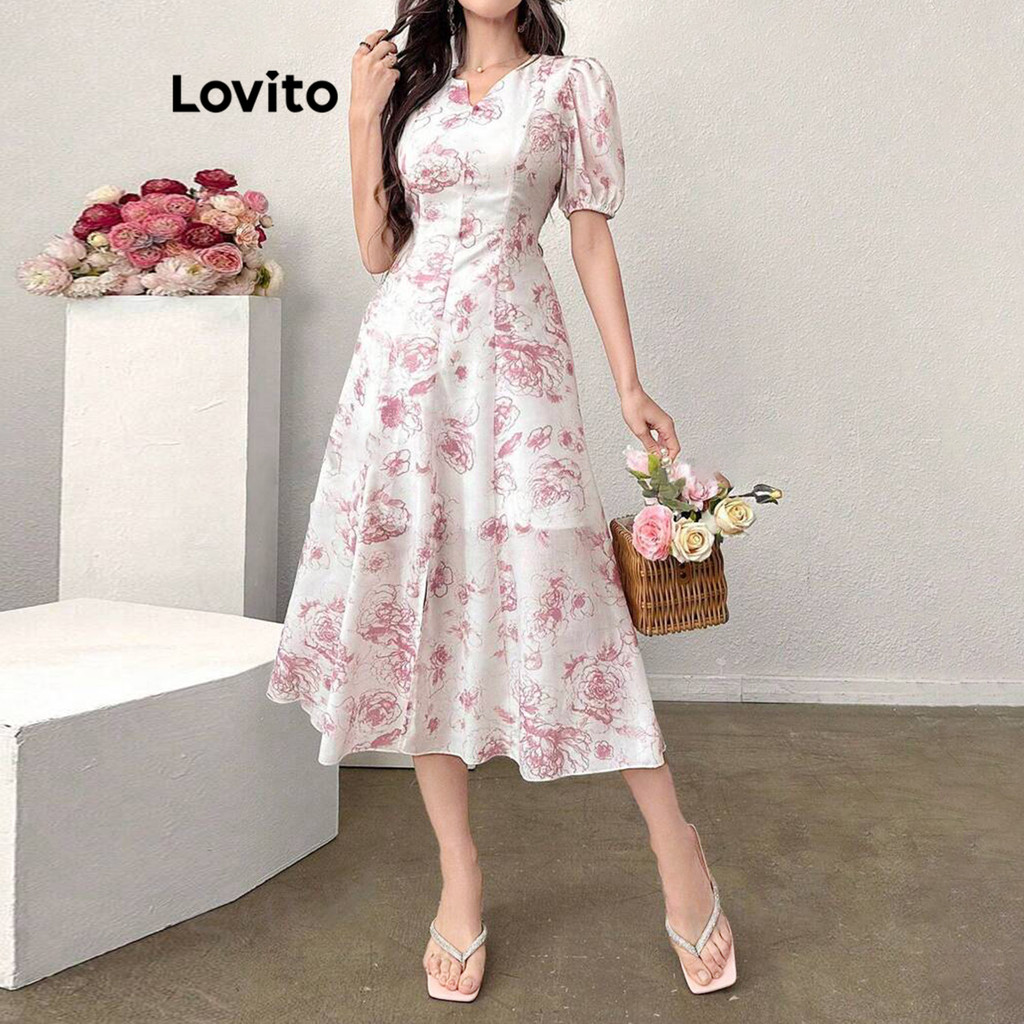 Lovito Vestido Boho Ditsy Floral Padrão Vestido Flores Para Mulheres L100MD196