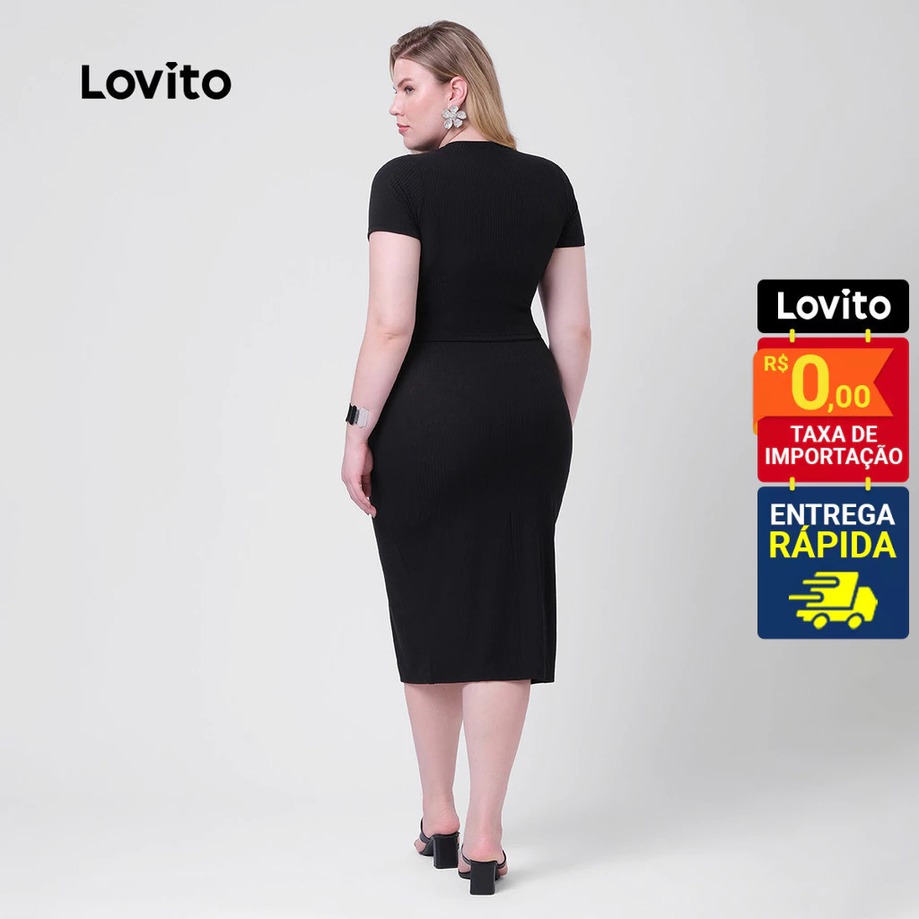 Lovito Conjunto Feminino Malha Blusa e Saia Midi Plus Size LB320BRL349