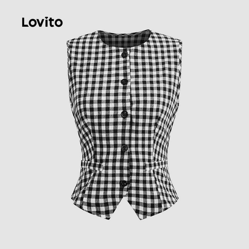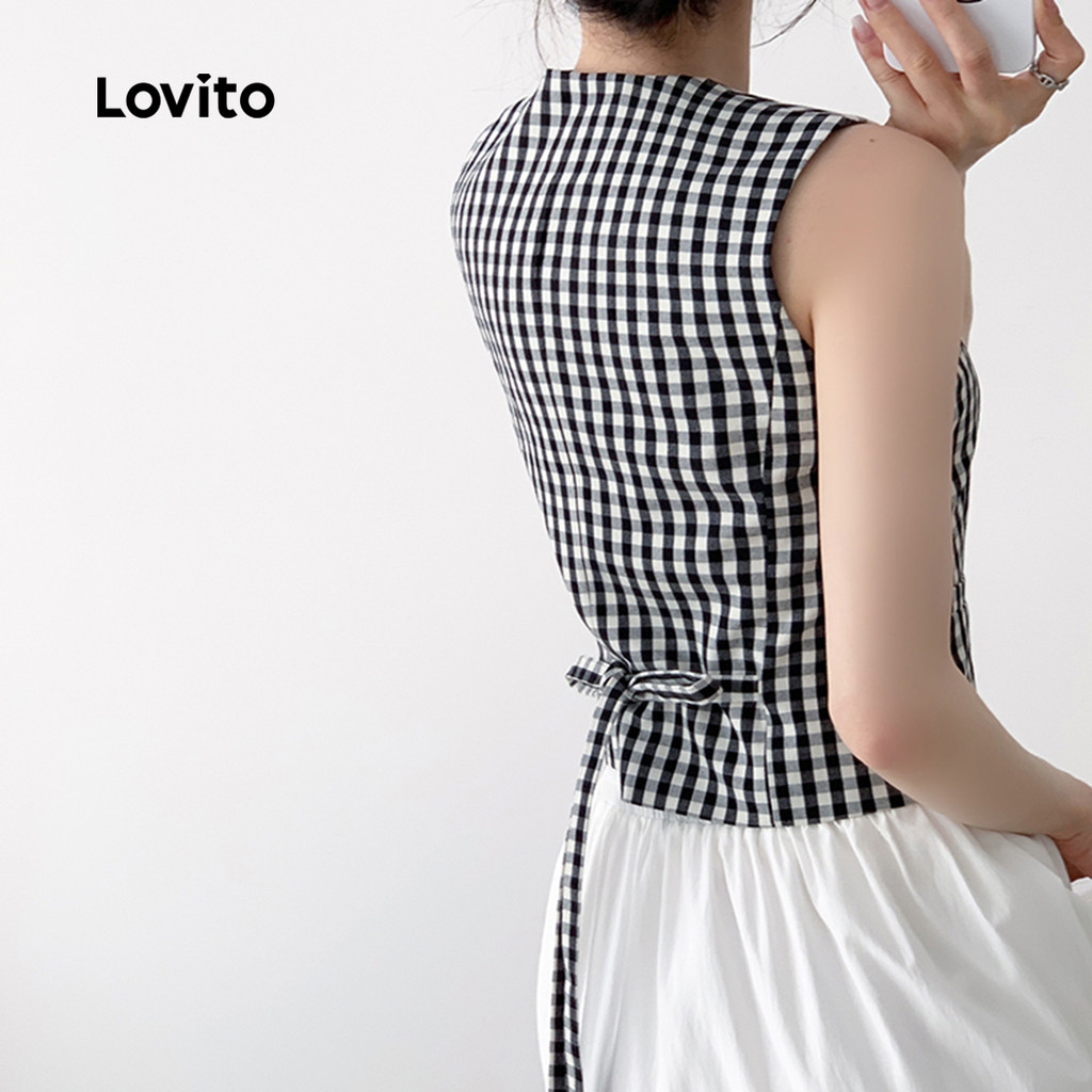 (New) Lovito Top Elegante de Primavera/verão Preto e Branco para Mulheres L144AD150