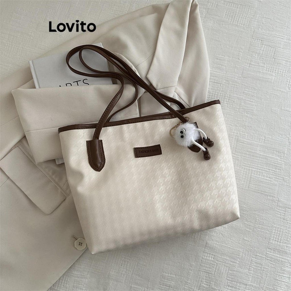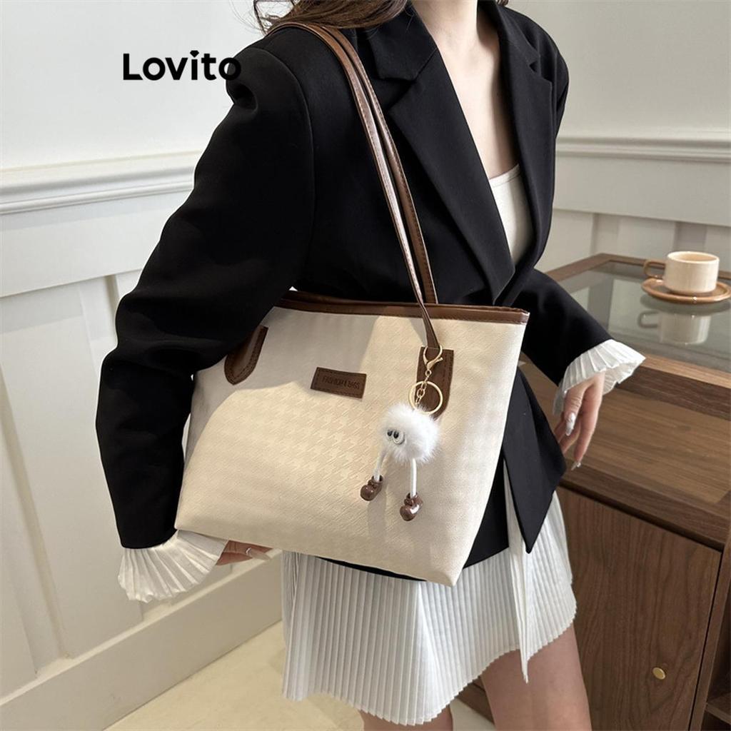 Lovito Bolsa De Ombro Casual Bolsa De Estrutura Lisa Bolsa De Ombro Remendada Para Mulheres LFA43710