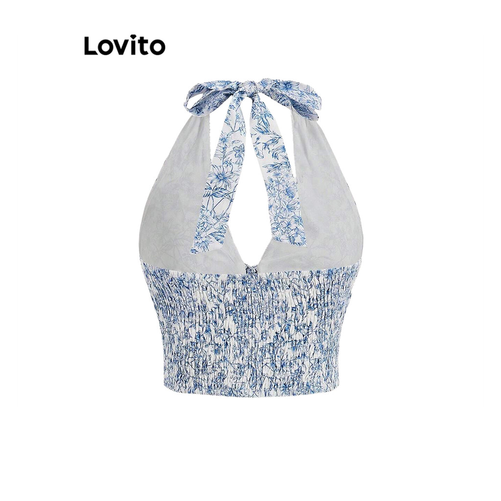 Lovito Regata Casual Floral Com Cadarço Para Mulheres L101AD215