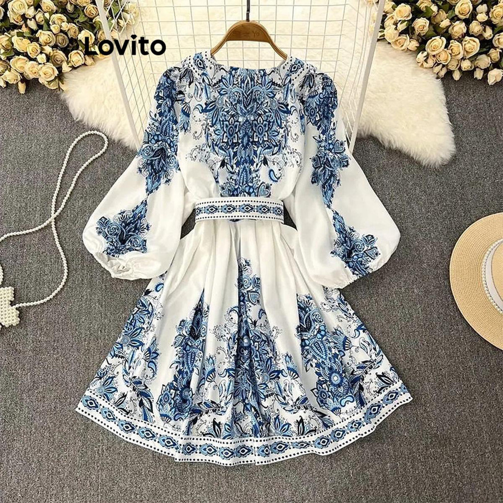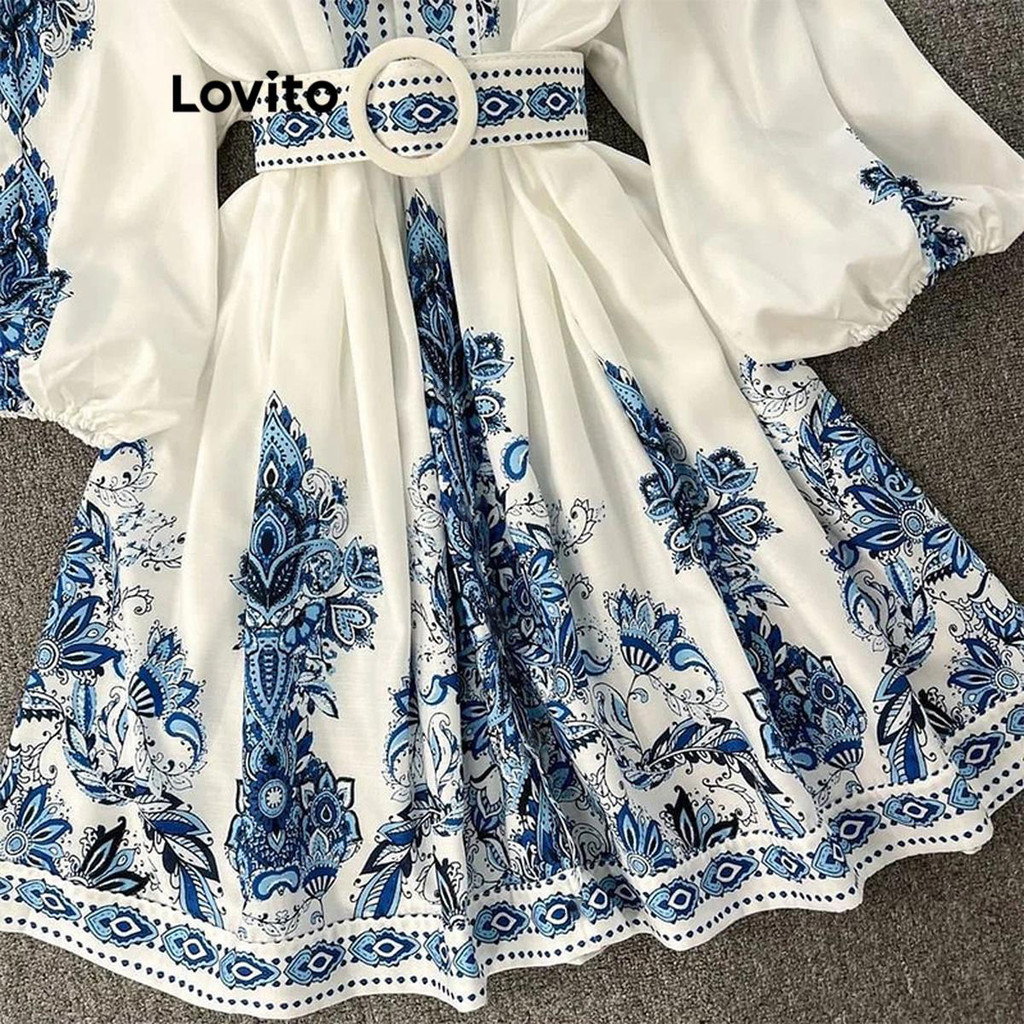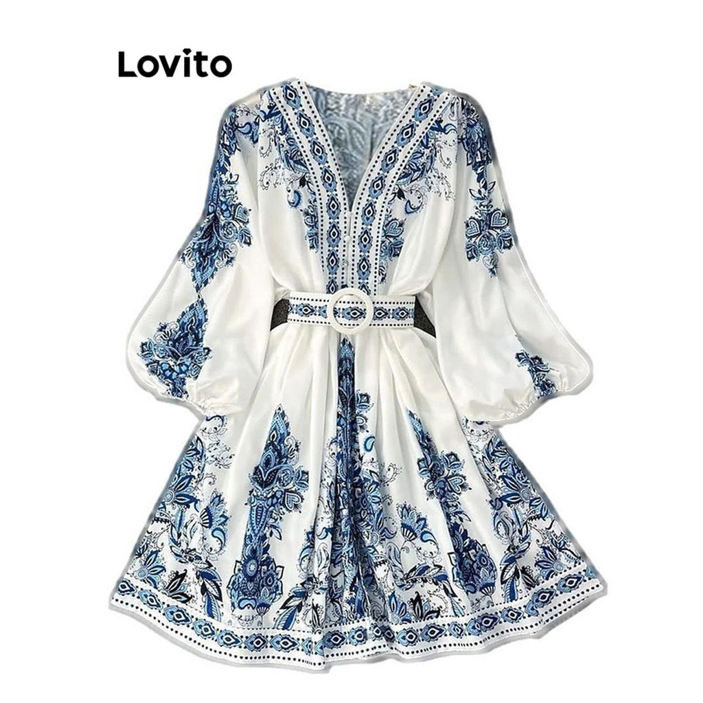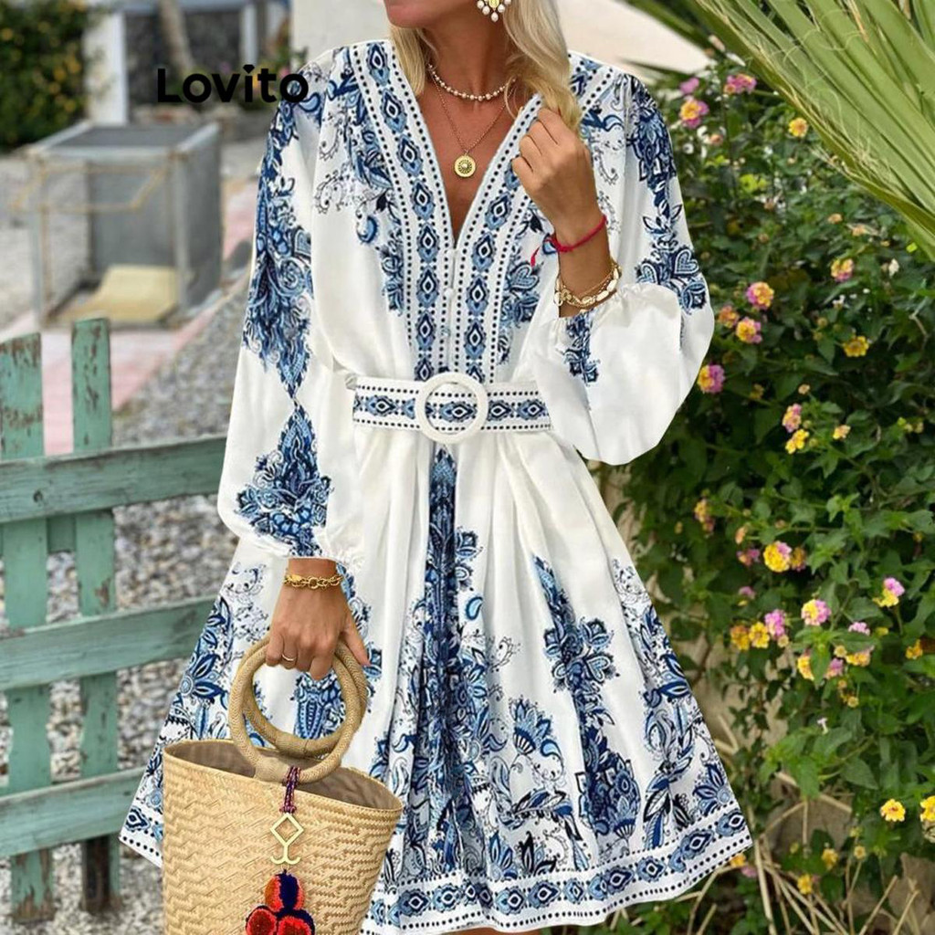 (Trendy) Lovito Vestido Boho Vestido Geométrico Com Estampa Tribal Para Mulheres LNL60113