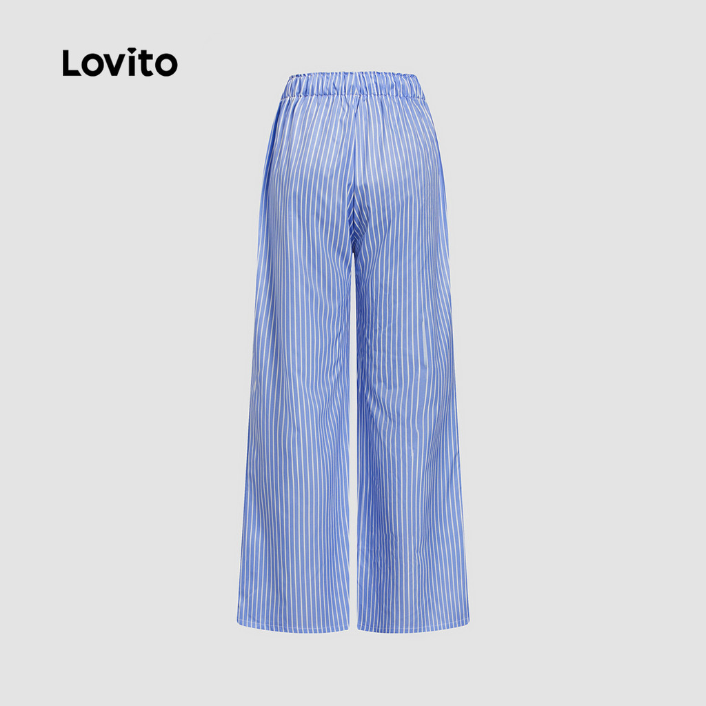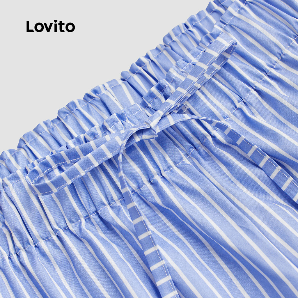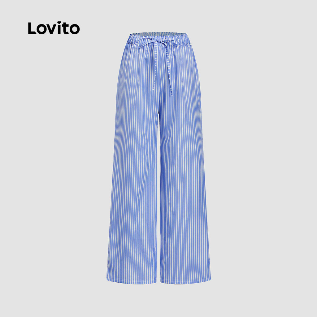 Lovito Calça Casual Listrada Com Cadarço, Calça De Verão Para Mulheres L113MD426