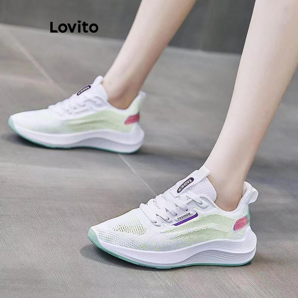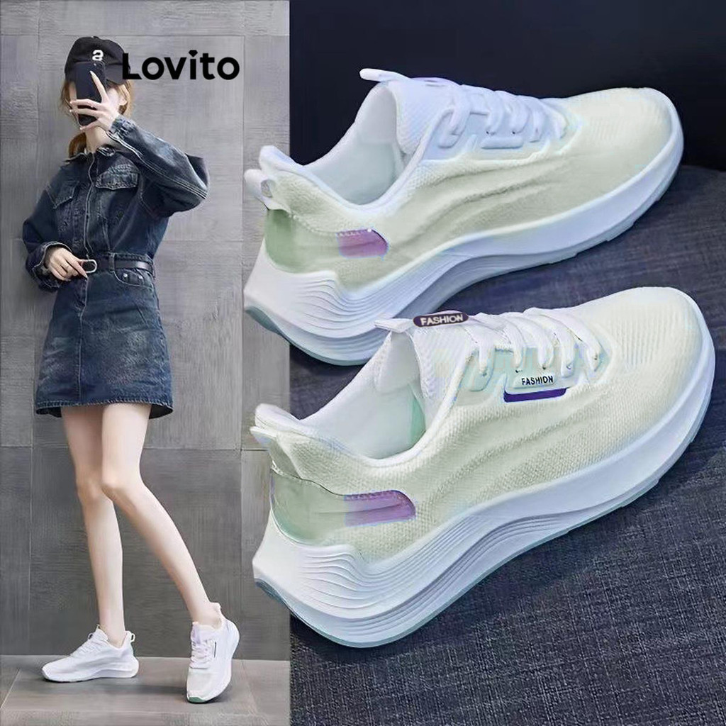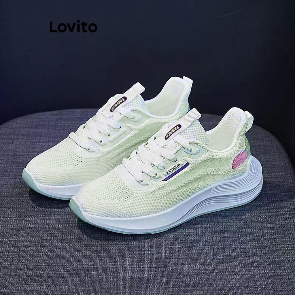 Lovito Esporte simples versão sapatos malha respirável esportes correndo moda tênis para mulher LFA62057