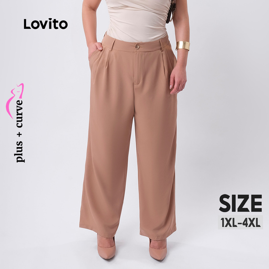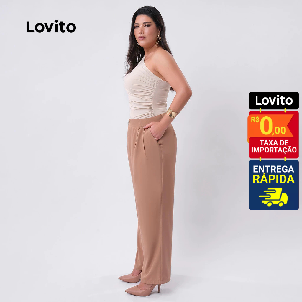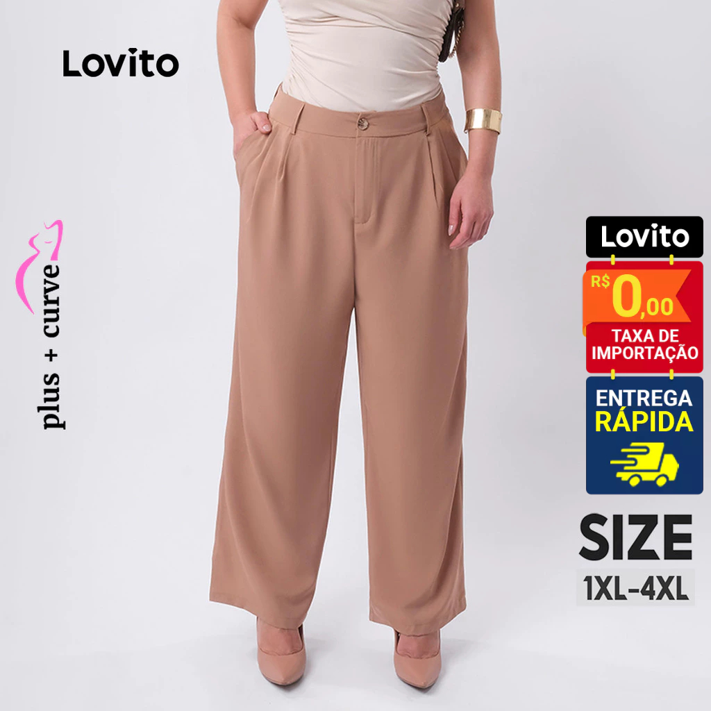 Lovito Calça Feminina Elegante Alfaiataria Plus Size LB423BRL452