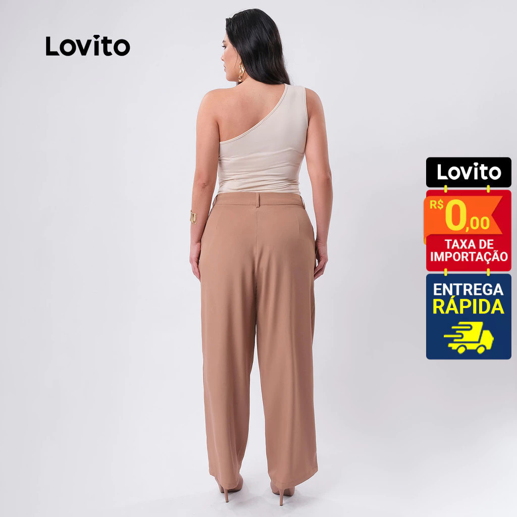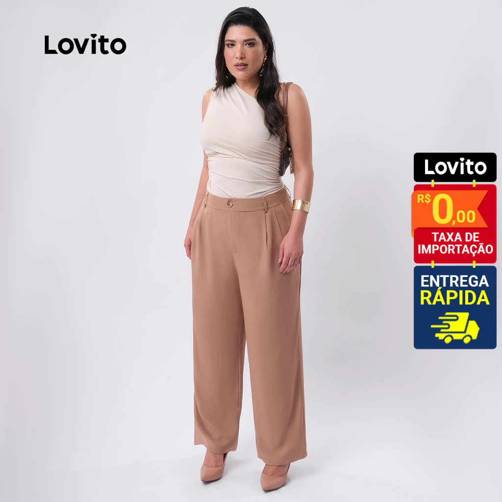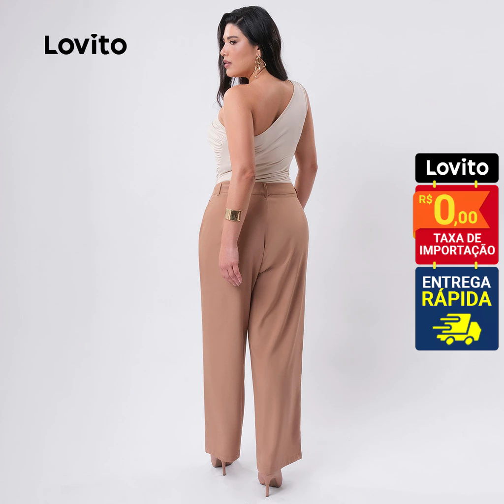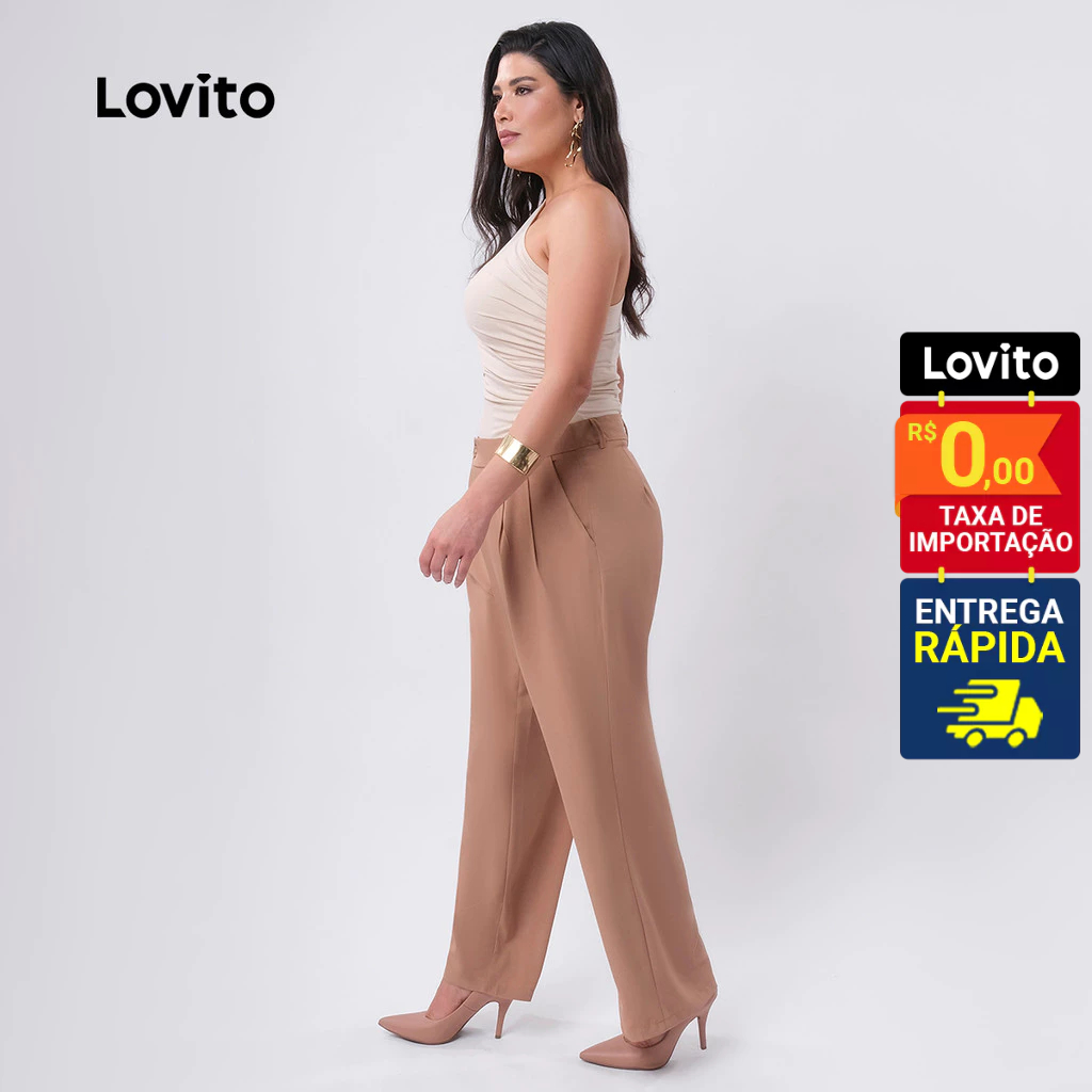 Lovito Calça Feminina Elegante Alfaiataria Plus Size LB423BRL452
