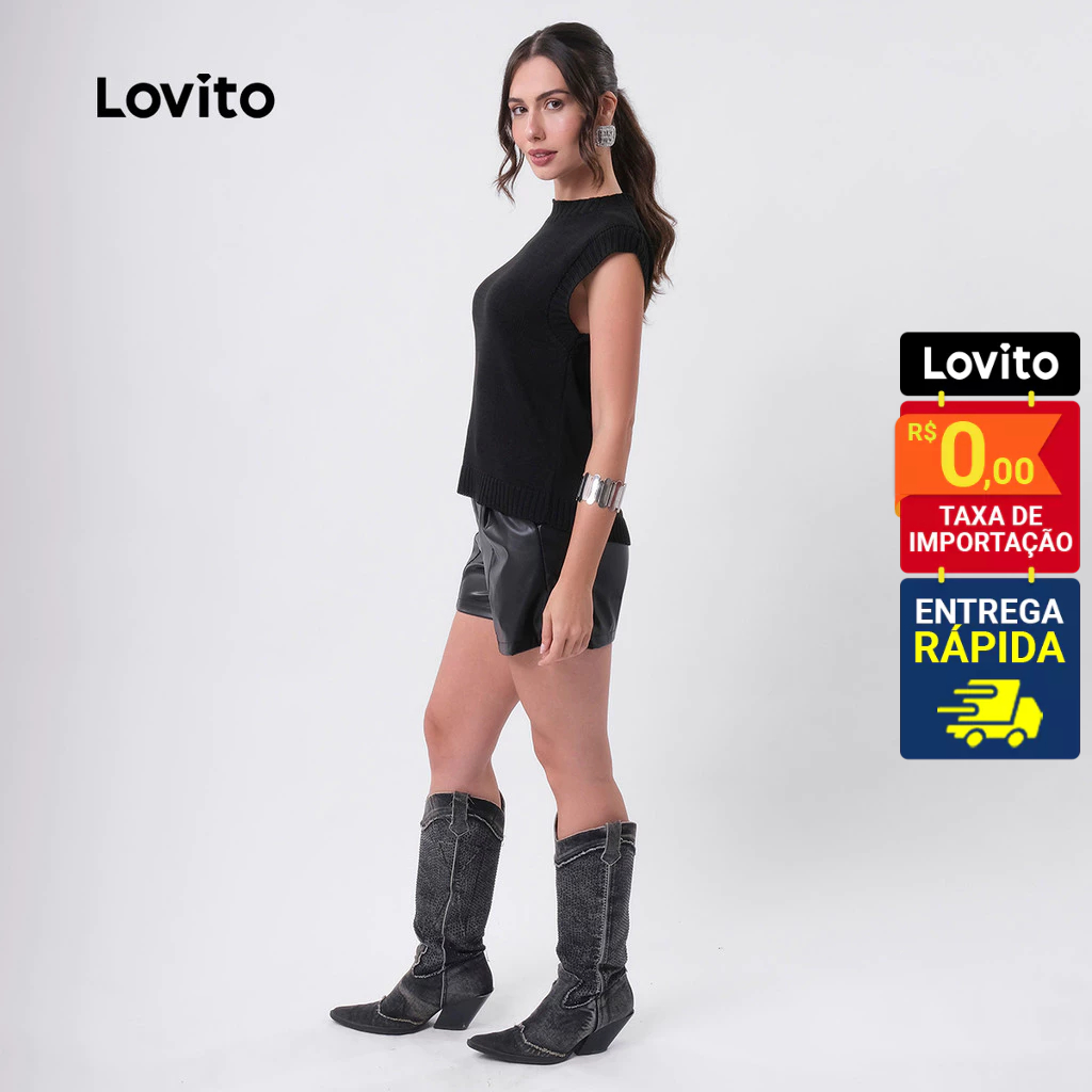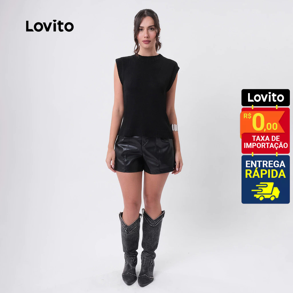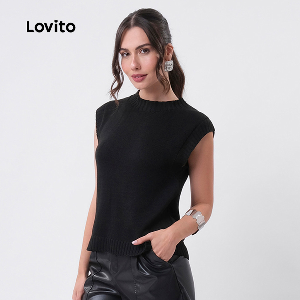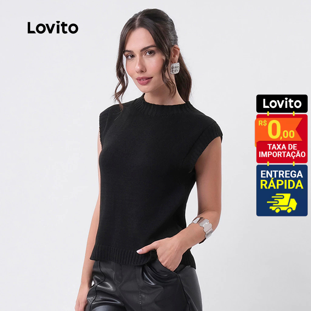 Lovito Blusa Tricot Elegante Preta Sem Mangas Lisa Feminina LB364BRL393