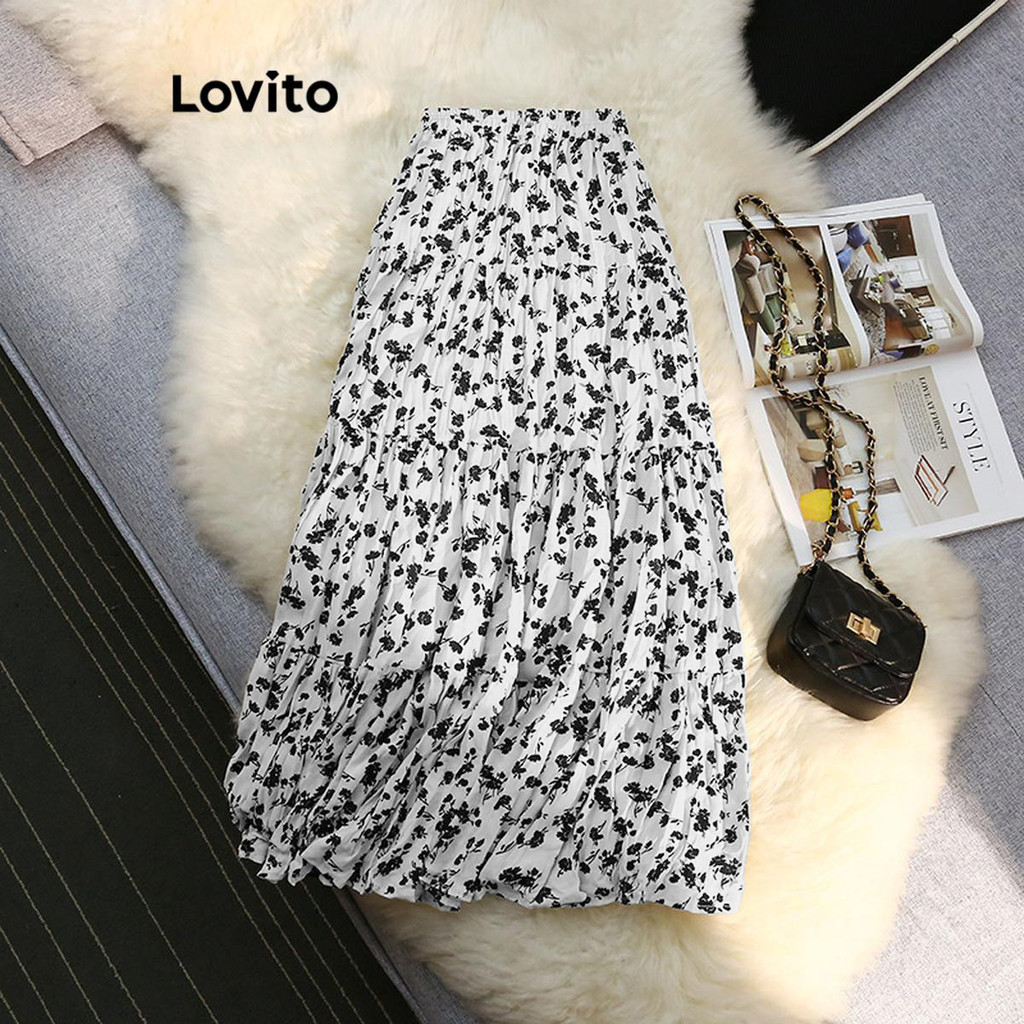 Lovito Saia Feminina Midi Elástico Cintura Estampada LNL45121