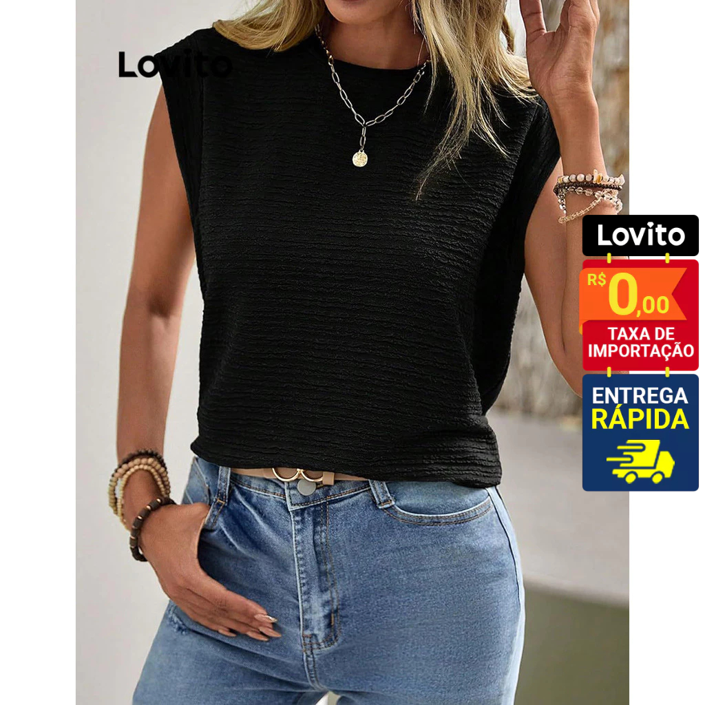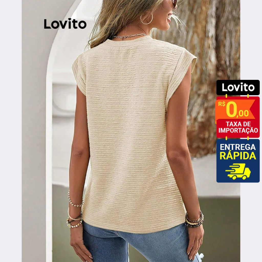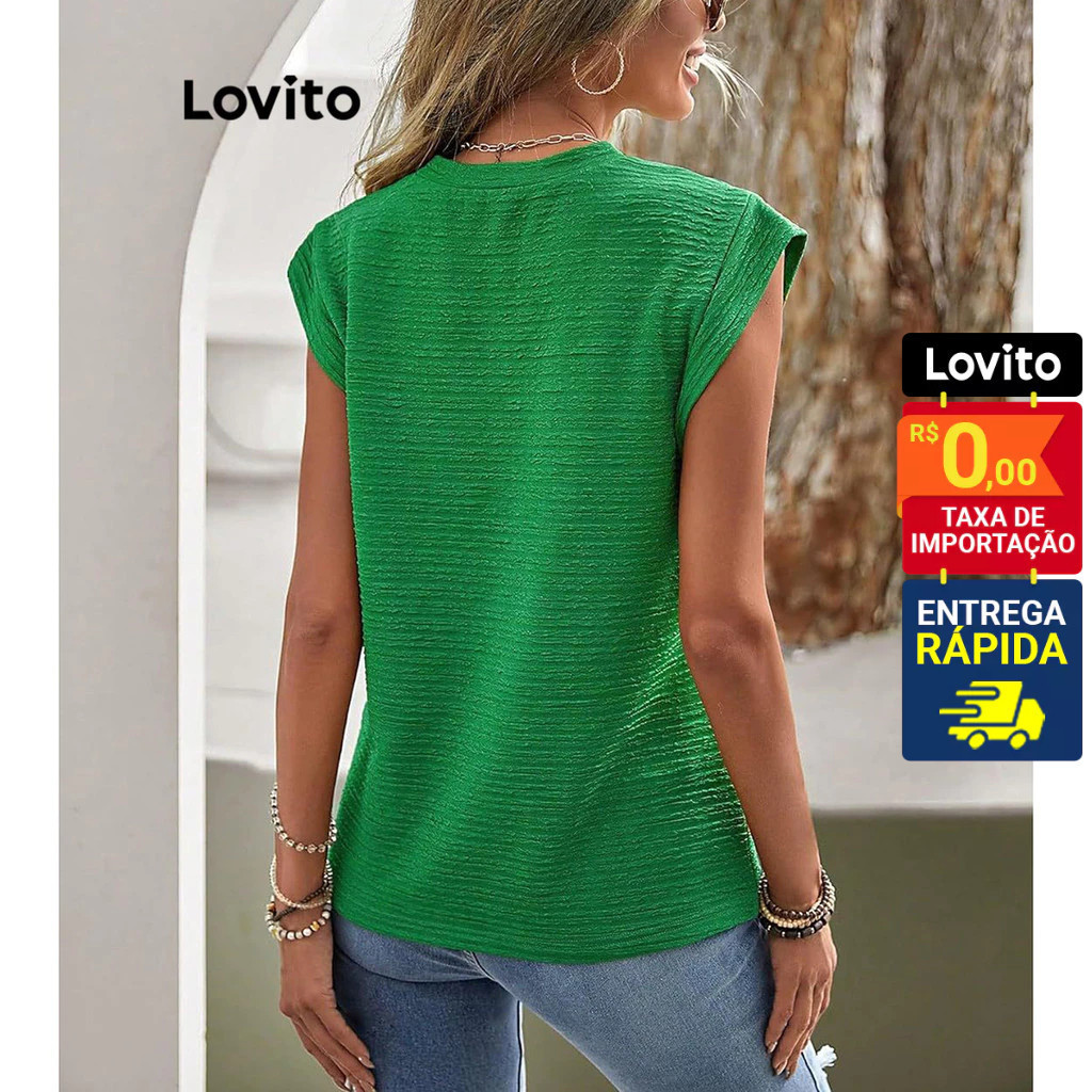 Lovito Camiseta Casual Feminina Manga Curta com Tecido Texturizado LNL43068