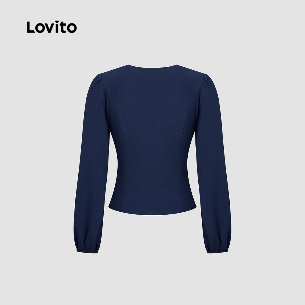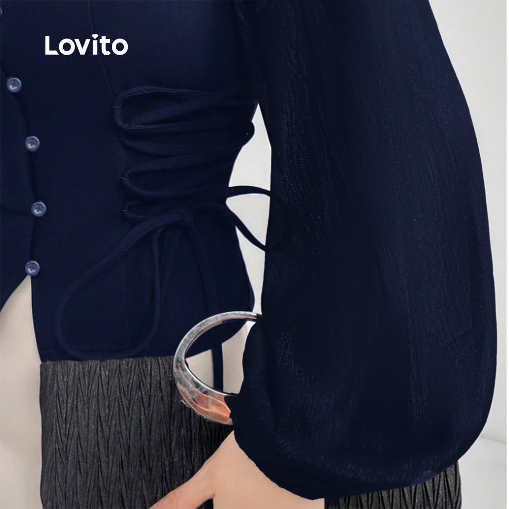 Lovito Blusa Elegante de Renda com Amarração Primavera/verão Blusa Azul Escura para mulheres L154ED392